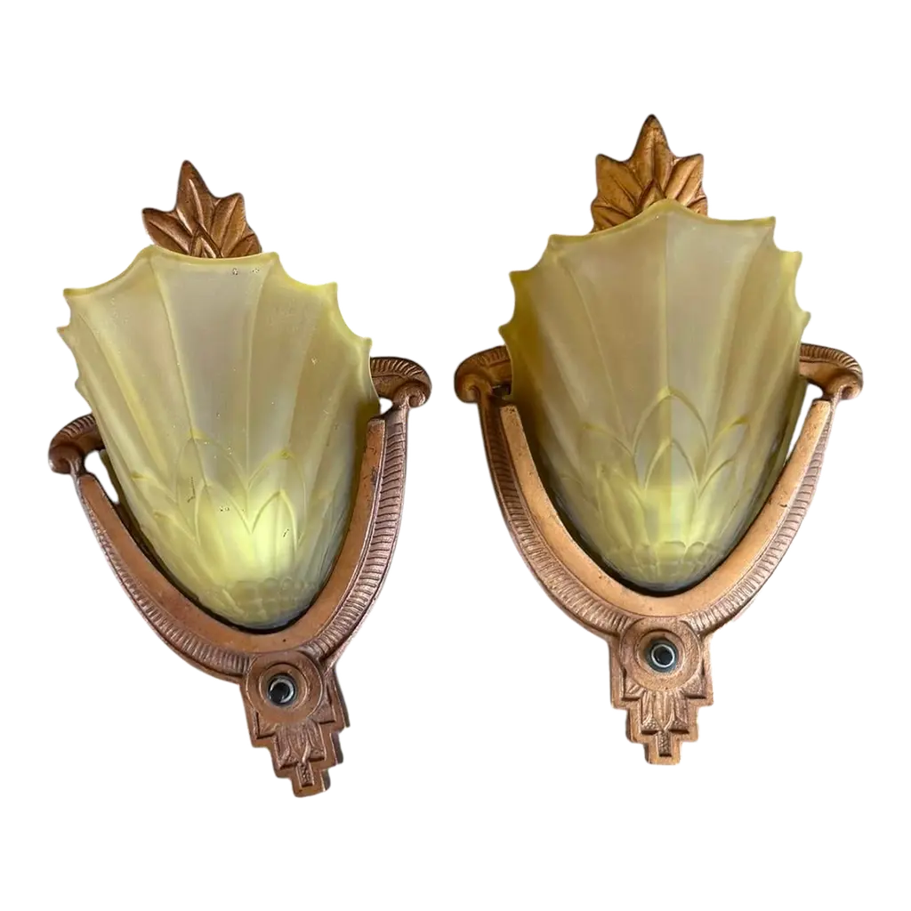 Two Of Eight Original French Art Deco Monumental Art Glass Sconces Genet&michon