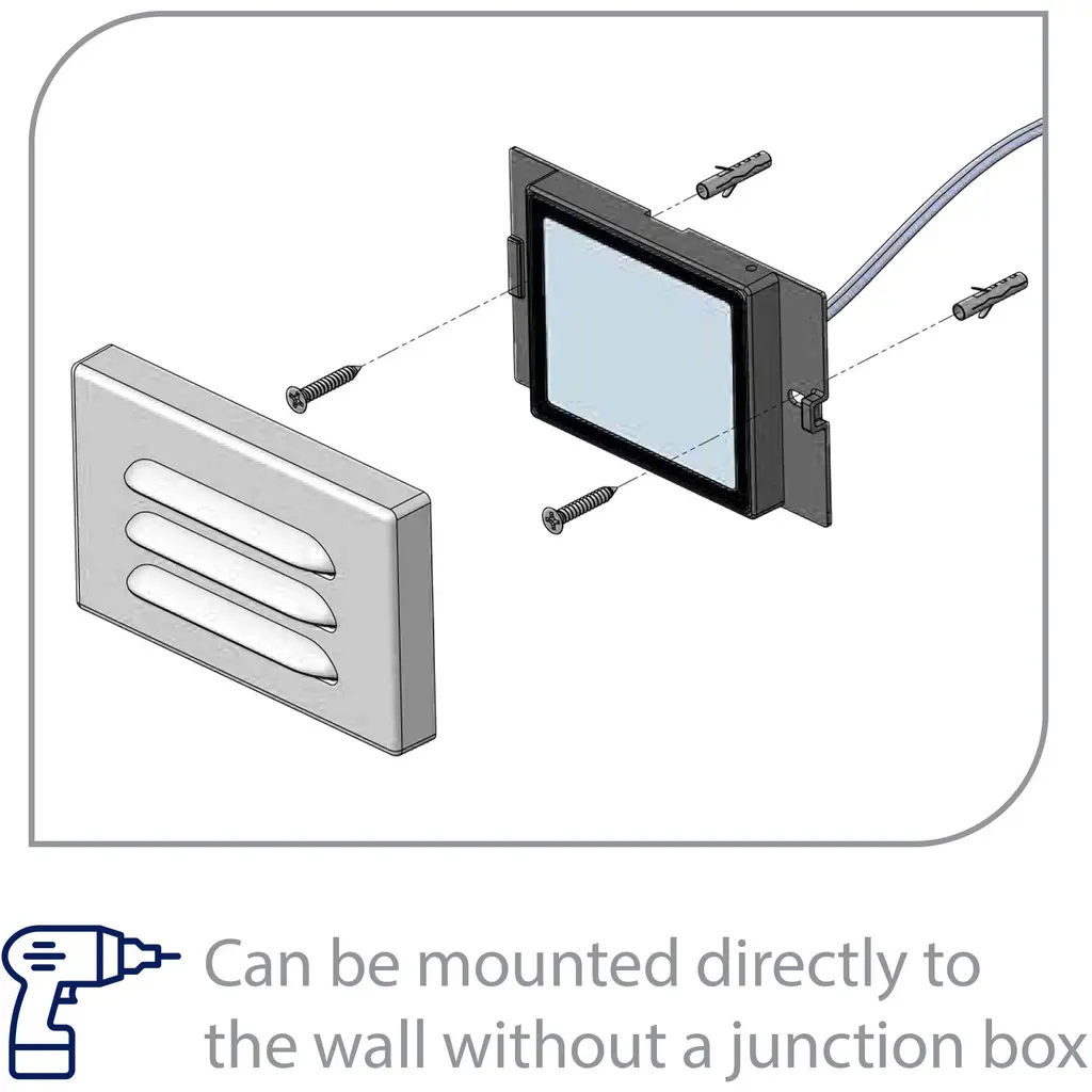 This slim low-profile step and wall light is designed to surface mount onto any application without the need for an electrical box like traditional step and wall lights, enabling the versatility to install the WAC Surface Mounted Step and Wall Light anywhere you would like. Available in a variety of finishes and color temperatures, this sleek and versatile step and wall light is sure to meet your expectations. UL and cUL listed for exterior locations with an IP66 rating to withstand rain and continuous streams of water. Constructed from a corrosion resistant aluminum alloy with a die-cast solid brass option for marine or coastal environments. Accepts an input voltage range of 9-15VAC and can tap into an existing landscape lighting power supply. If there is no existing power supply, this light will require a remote 12VAC transformer (EN-12100-RB2) sold separately to step down your 120VAC household voltage down to 12VAC. A 3ft lead wire is included for ease of installation.