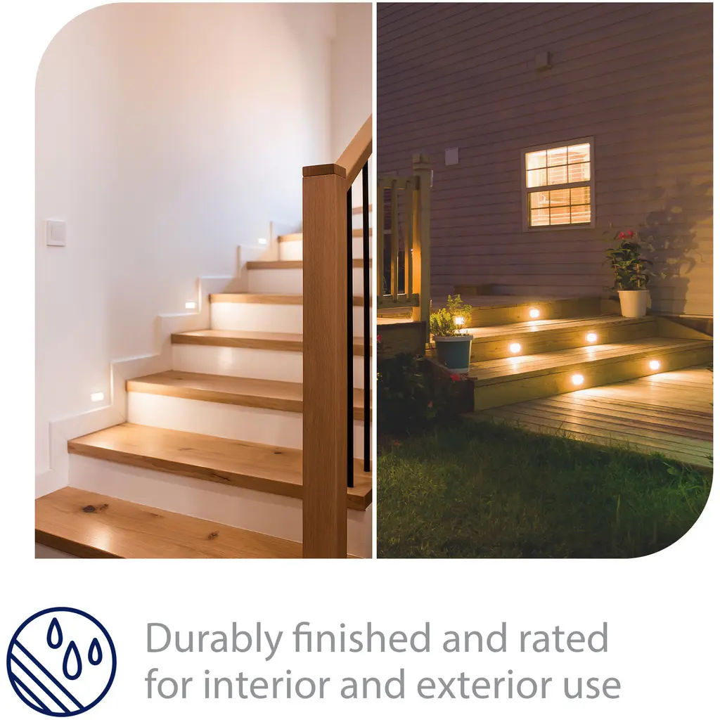 120V step and wall lights by WAC Lighting are offered in a variety of styles and can be installed onto a standard 2in x 4in electrical junction box. These luminaires offer enhanced energy efficient functionality and optimized light output to adequately illuminate stairs, walls and walkways with little or no glare and are perfect for indoor or outdoor applications. Available in 3000K warm white, 2700K warm, amber warm, blue, and red LED color temperatures - order accordingly. Factory sealed and water tight with an IP66 rating for protection against high-pressure water jets and outdoor elements. Casted using a special k-alloy aluminum that is engineered to withstand the most challenging environments over time. Stainless steel (-SS) or solid brass coated in bronze (-BBR) finishes are available for enhanced protection against corrosive elements and is recommended for use in coastal or marine environments.