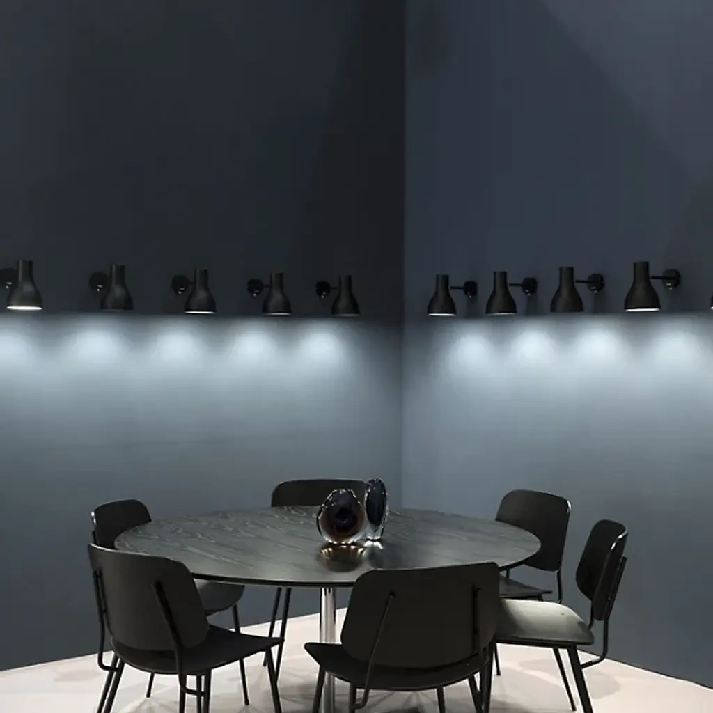 The Anglepoise Type 75 Wall Sconce proves the versatility of sophisticated mechanics and industrial design, adapting this 1950s classic to a convenient wall position. The aluminum shade is both crisp and smooth—emblematic of mid-century modern aesthetics—sitting comfortably from the wall on an extended arm, able to provide ample down lighting or angled spots of light with the adjustable shade. Increasingly flexible, the Type 75 is cleverly outfitted with a chrome switch at the base for further functionality.