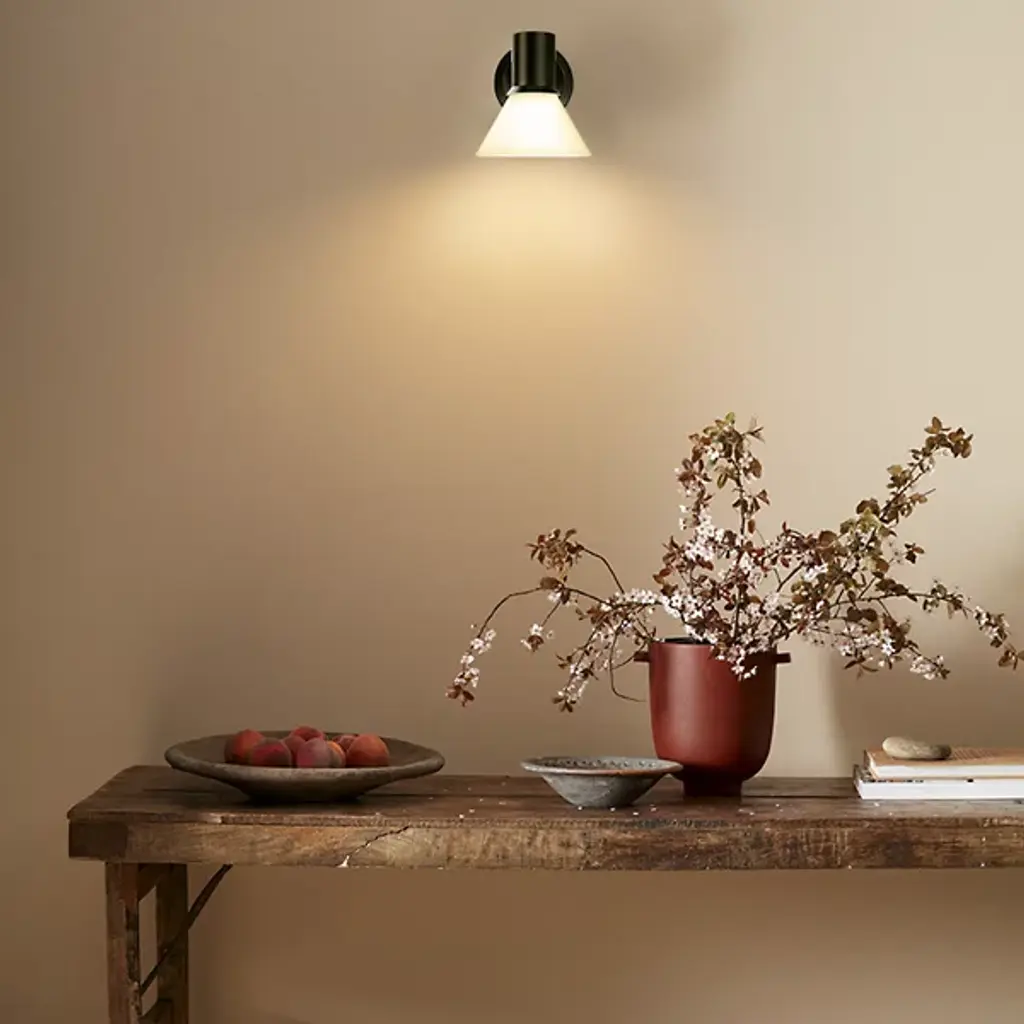 The Type 80 Glass W4 Wall Sconce from Anglepoise brings a refined balance of form and function to indoor walls. This Kenneth Grange design is a fixed wall light featuring an opal glass shade that softly diffuses light while directing a focused wall wash below. Its clean graphic profile is complemented by precision-engineered details that enhance both style and usability. Thoughtfully designed for modern interiors, this sconce delivers warm ambient lighting with a practical touch.