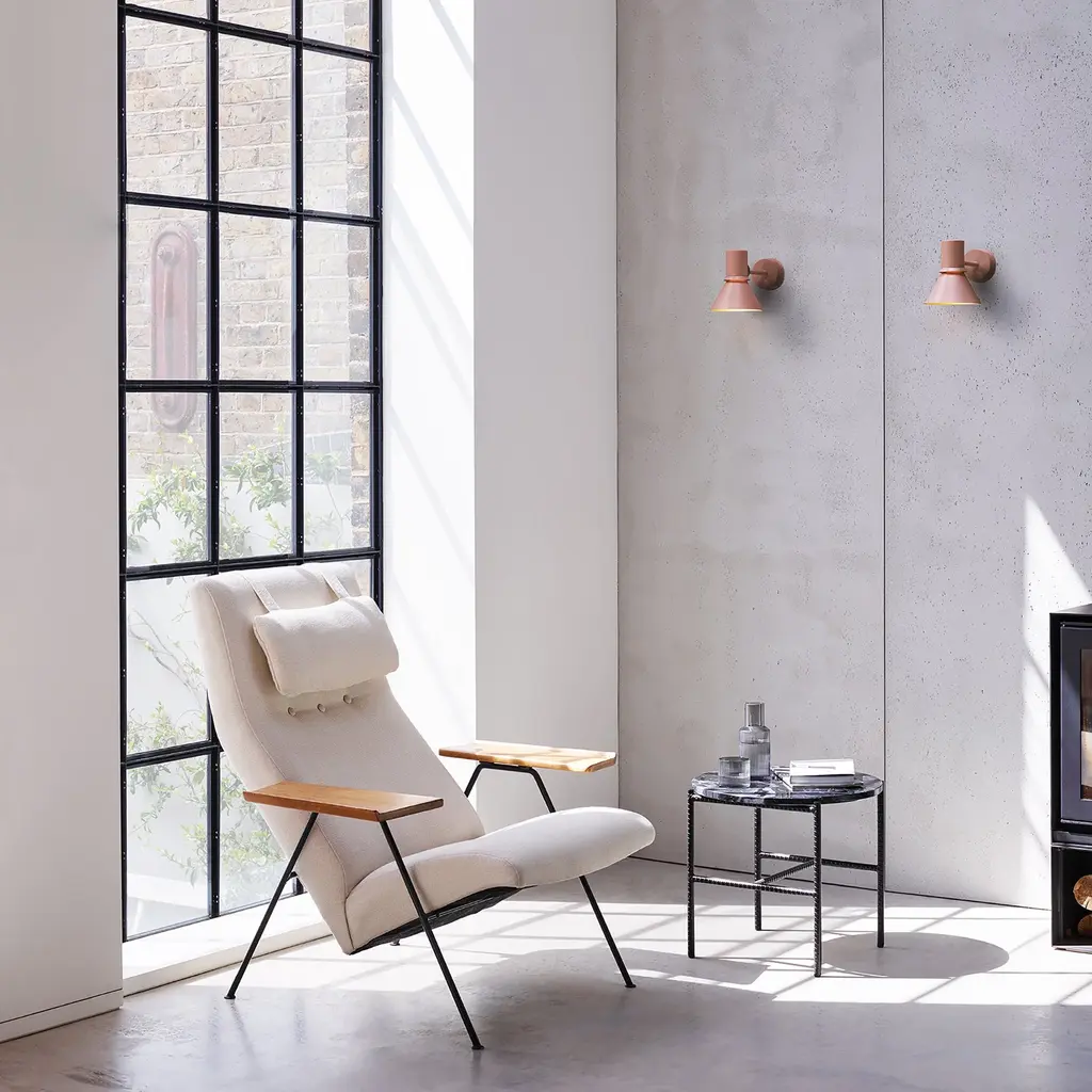Sir Kenneth Grange’s design update adds a “halo” of ambient illumination to the classic Anglepoise metal shade in this adjustable wall fixture. Type 80 features sprung joint mechanisms with an accessible on/off switch on the shade. The wall sconce is visually aligned and easy to install, in a palette of contemporary colors with a desirable matte finish.