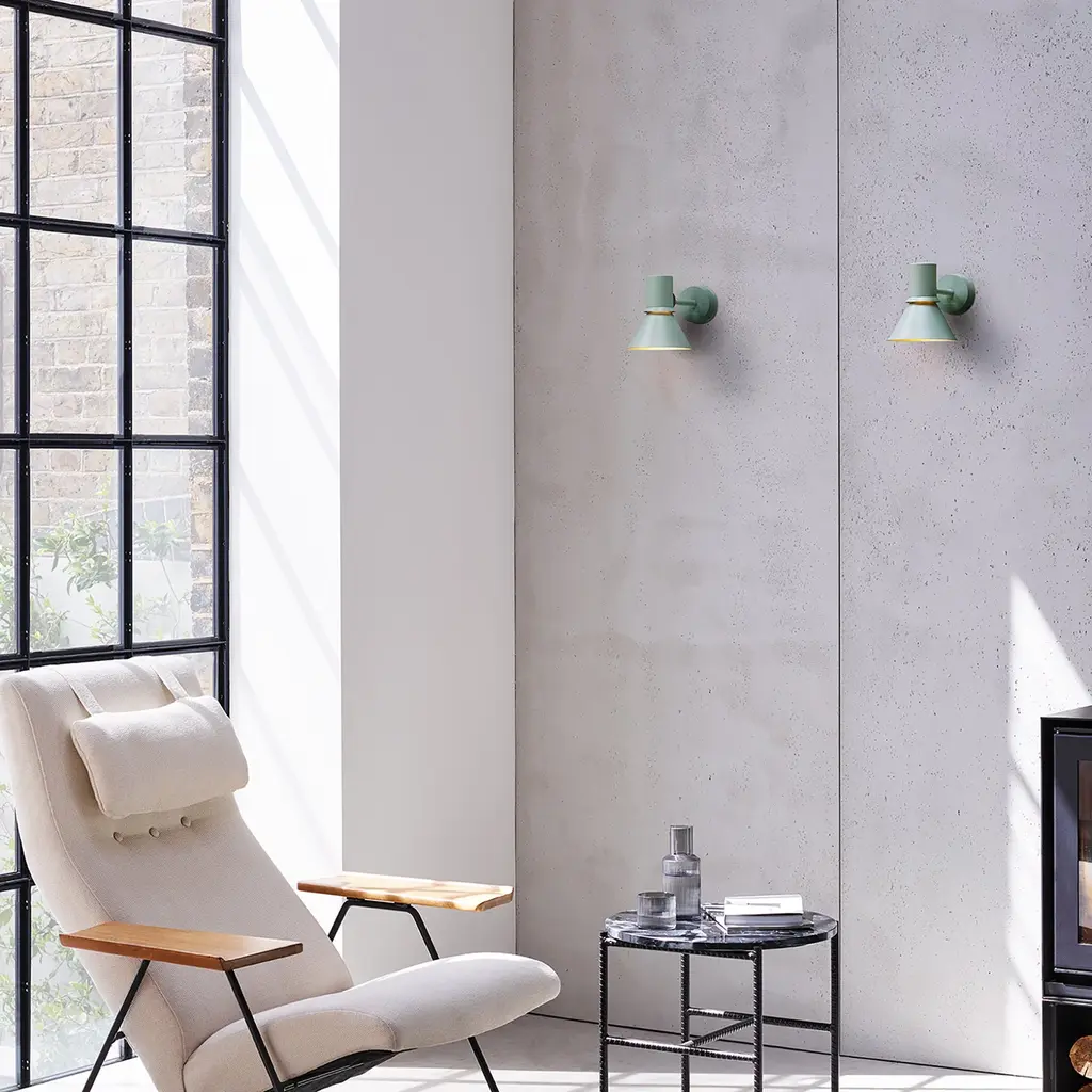 Sir Kenneth Grange’s design update adds a “halo” of ambient illumination to the classic Anglepoise metal shade in this adjustable wall fixture. Type 80 features sprung joint mechanisms with an accessible on/off switch on the shade. The wall sconce is visually aligned and easy to install, in a palette of contemporary colors with a desirable matte finish.