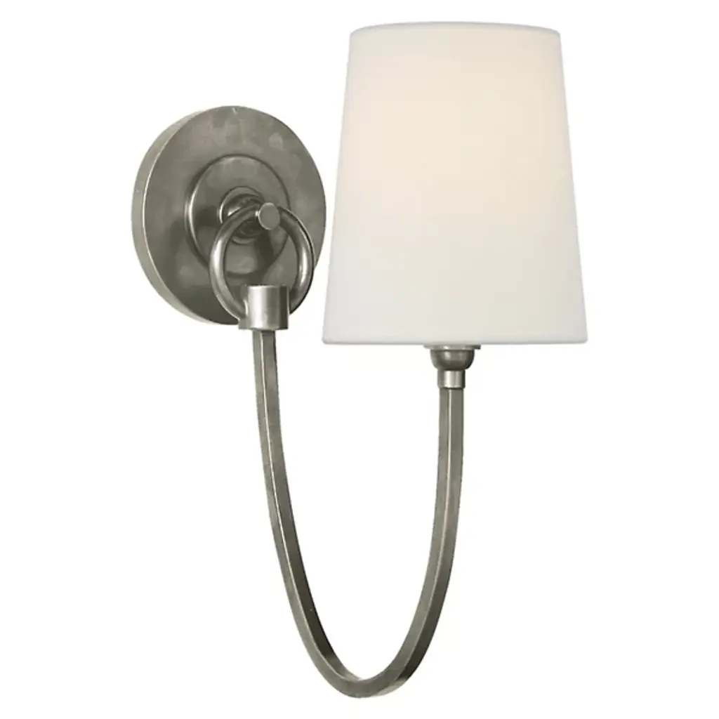 Seamless in lighting, flawless in form, the Understudy Wall Sconce by Visual Comfort Signature, formerly known as Visual Comfort, brings a decorative flourish to your living space. Its design features a round Silk shade which suspends from a dramatically curved arm and ribbed wallplate and can be rotated side to side to angle the light where you need it most.