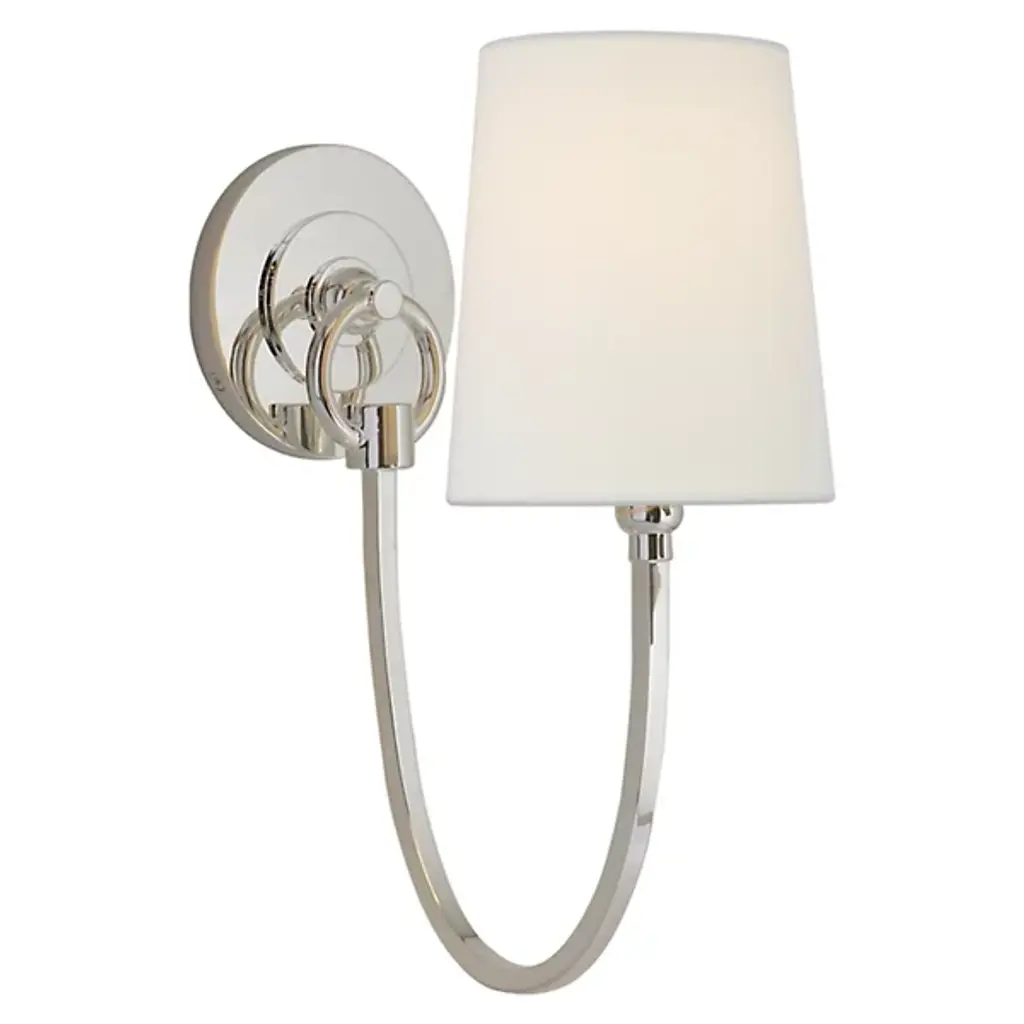 Seamless in lighting, flawless in form, the Understudy Wall Sconce by Visual Comfort Signature, formerly known as Visual Comfort, brings a decorative flourish to your living space. Its design features a round Silk shade which suspends from a dramatically curved arm and ribbed wallplate and can be rotated side to side to angle the light where you need it most.