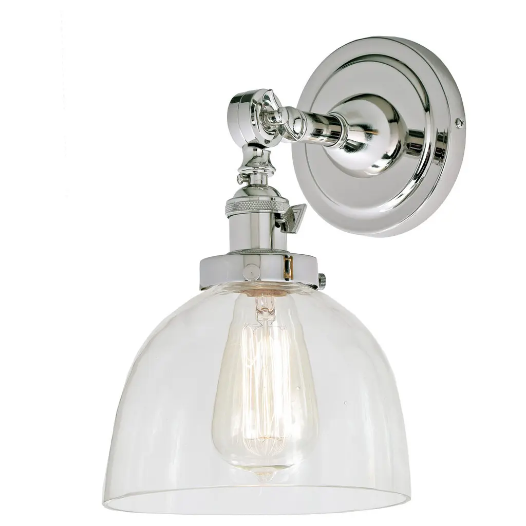 One light Union Square wall sconce polished nickel finish 7" Wide, clear mouth blown glass shade