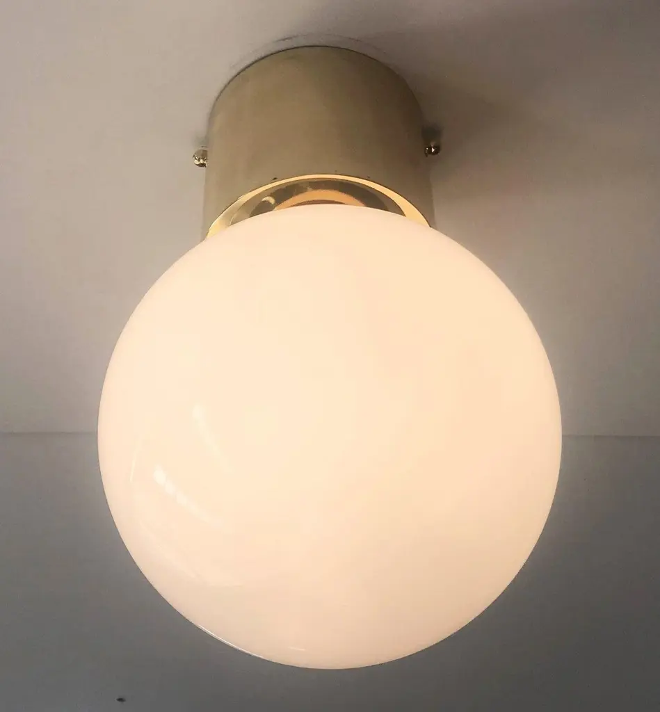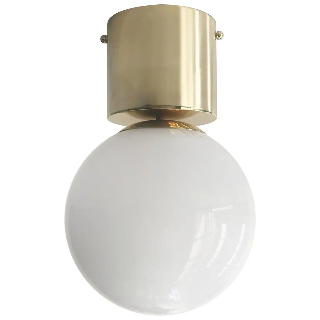 Italian flush mount with Murano glass globe and brass frame / Made in ItalyDesigned by Fabio Ltd, inspired by Angelo Lelli and Arredoluce styles1 light / E12 or E14 type / max 40WHeight: 12.5 inches / Diameter: 8 inchesOrder only / This item ships from ItalyOrder Reference #: FABIOLTD UNO GLOBEThe listed price applies to all Brass finishes : Unlacquered Natural Brass, Unlacquered Polished Brass, Lacquered Polished Brass, Lacquered Satin BrassOther finishes available with upcharge of $100 : Bronzed, Polished Chrome, Satin Chrome, Polished Nickel, Satin Nickel, Polished Black Nickel, Satin Black Nickel, Polished Copper, Satin Copper