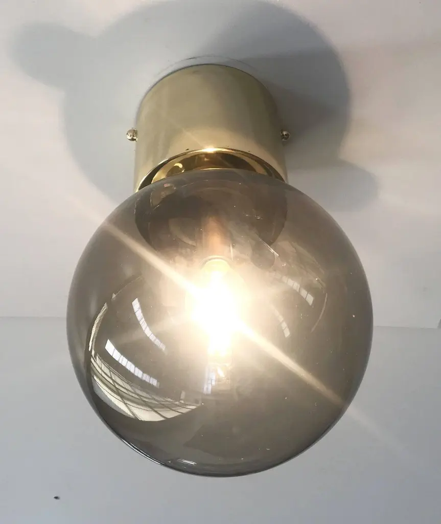 Italian flush mount with Murano glass globe and brass frame / Made in ItalyDesigned by Fabio Ltd, inspired by Angelo Lelli and Arredoluce styles1 light / E12 or E14 type / max 40WHeight: 12.5 inches / Diameter: 8 inchesOrder only / This item ships from ItalyOrder Reference #: FABIOLTD UNO GLOBEThe listed price applies to all Brass finishes : Unlacquered Natural Brass, Unlacquered Polished Brass, Lacquered Polished Brass, Lacquered Satin BrassOther finishes available with upcharge of $100 : Bronzed, Polished Chrome, Satin Chrome, Polished Nickel, Satin Nickel, Polished Black Nickel, Satin Black Nickel, Polished Copper, Satin Copper