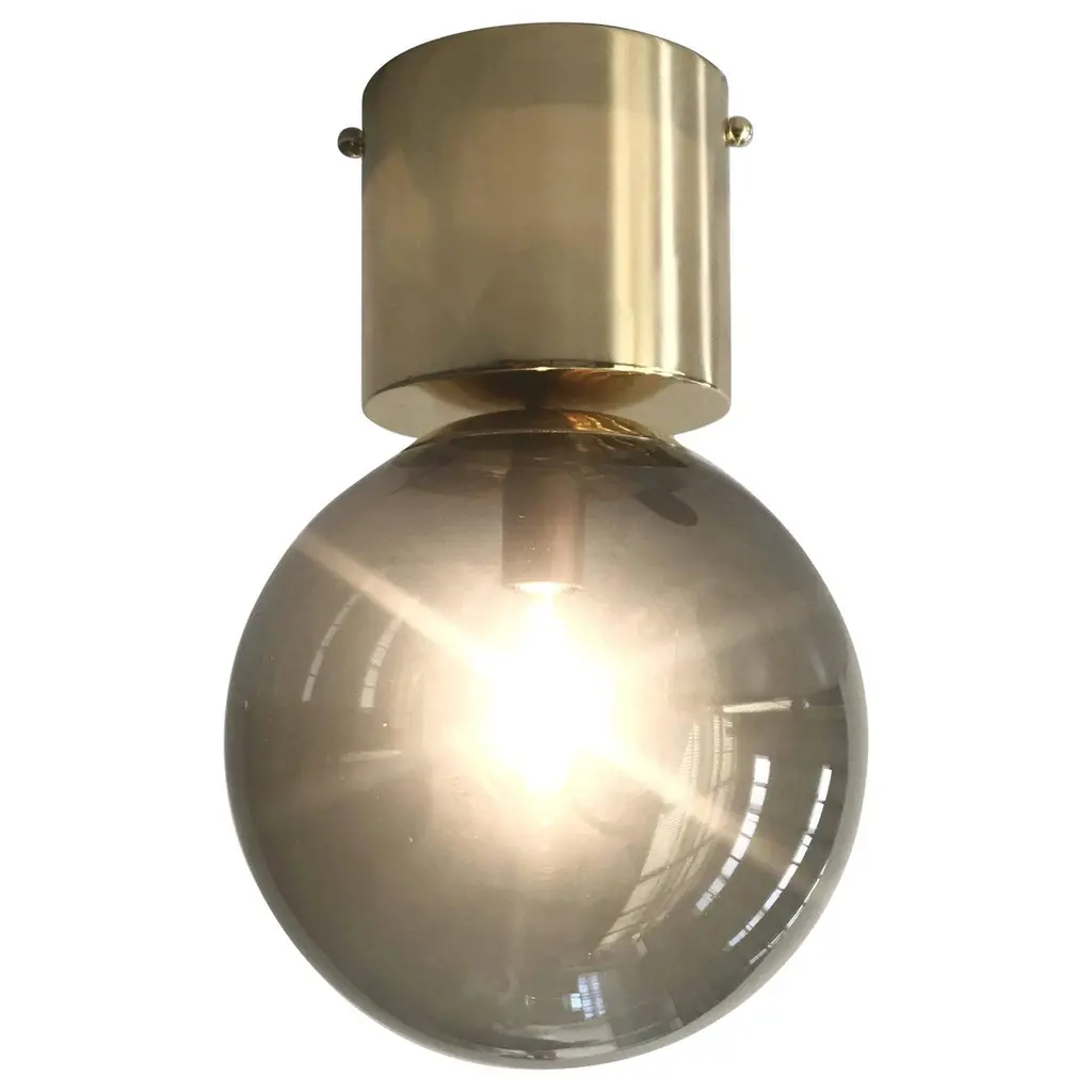 Italian flush mount with Murano glass globe and brass frame / Made in ItalyDesigned by Fabio Ltd, inspired by Angelo Lelli and Arredoluce styles1 light / E12 or E14 type / max 40WHeight: 12.5 inches / Diameter: 8 inchesOrder only / This item ships from ItalyOrder Reference #: FABIOLTD UNO GLOBEThe listed price applies to all Brass finishes : Unlacquered Natural Brass, Unlacquered Polished Brass, Lacquered Polished Brass, Lacquered Satin BrassOther finishes available with upcharge of $100 : Bronzed, Polished Chrome, Satin Chrome, Polished Nickel, Satin Nickel, Polished Black Nickel, Satin Black Nickel, Polished Copper, Satin Copper