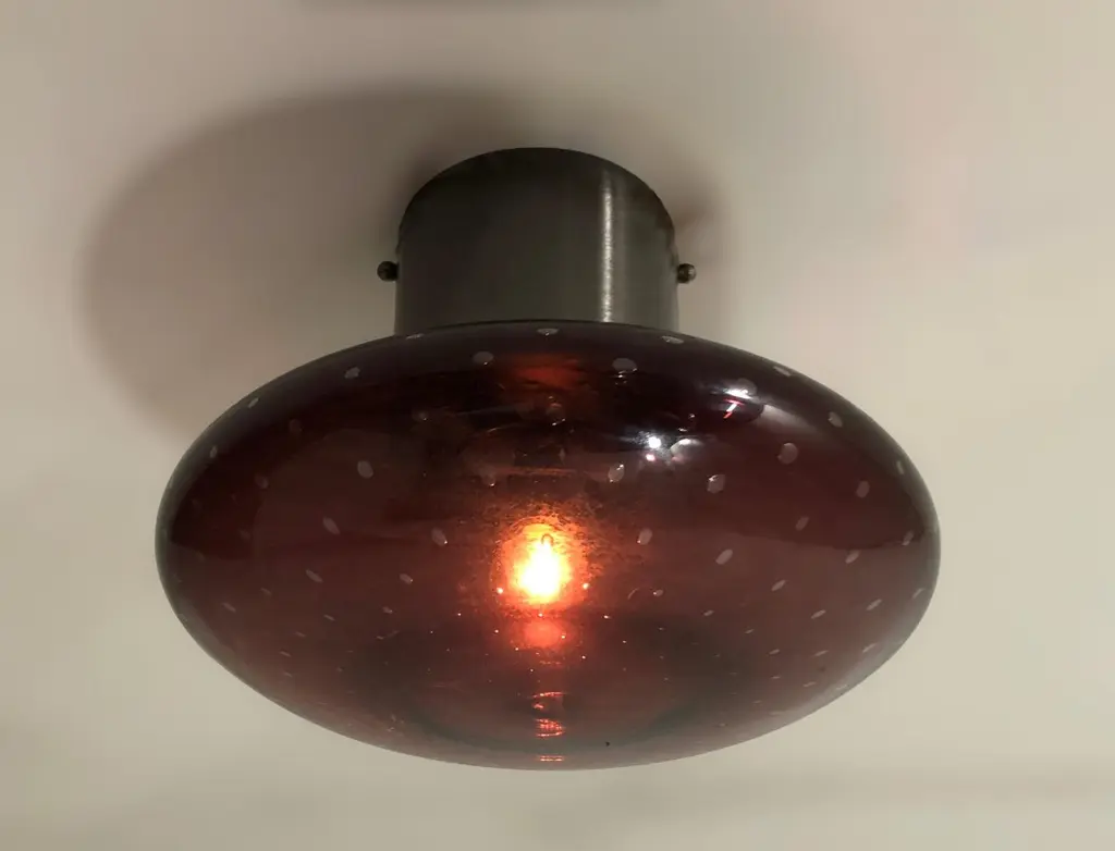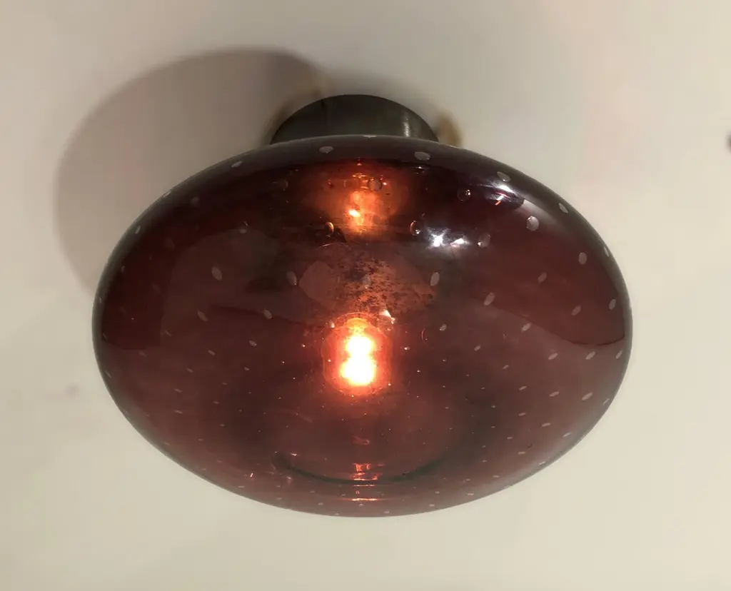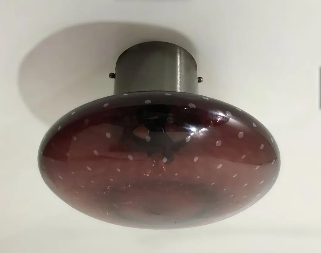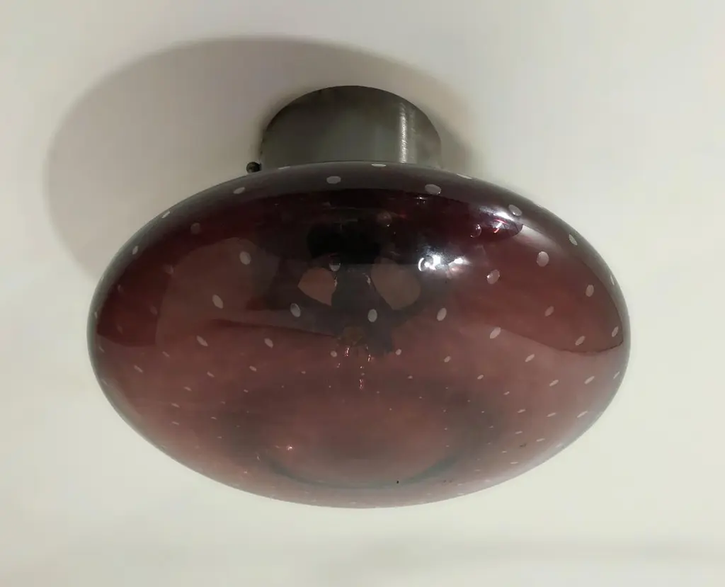 Italian flush mount with Murano glass shade and brass frame shown in satin black nickel finish / Made in ItalyDesigned by Fabio Ltd, inspired by Angelo Lelli and Arredoluce styles1 light / E12 or E14 type / max 40W eachDiameter: 12 inches / Height: 9.5 inchesOrder only / This item ships from ItalyOrder Reference: FABIOLTD UNO SHADEThe listed price applies to the following finishes : Bronzed, Polished Chrome, Satin Chrome, Polished Nickel, Satin Nickel, Polished Black Nickel, Satin Black Nickel, Polished Copper, Satin CopperOther finishes are available : Unlacquered Natural Brass, Unlacquered Polished Brass, Lacquered Polished Brass, Lacquered Satin Brass