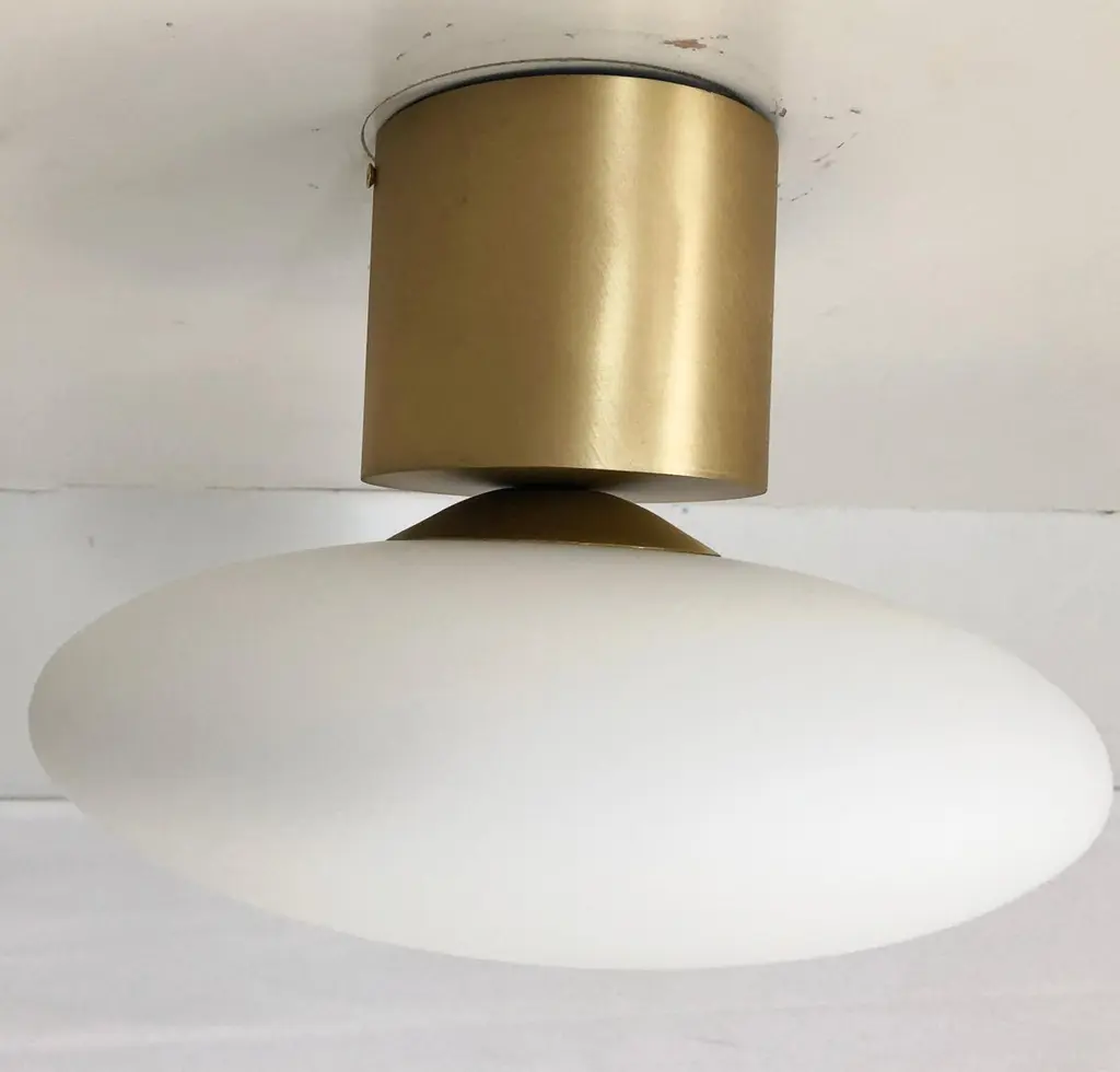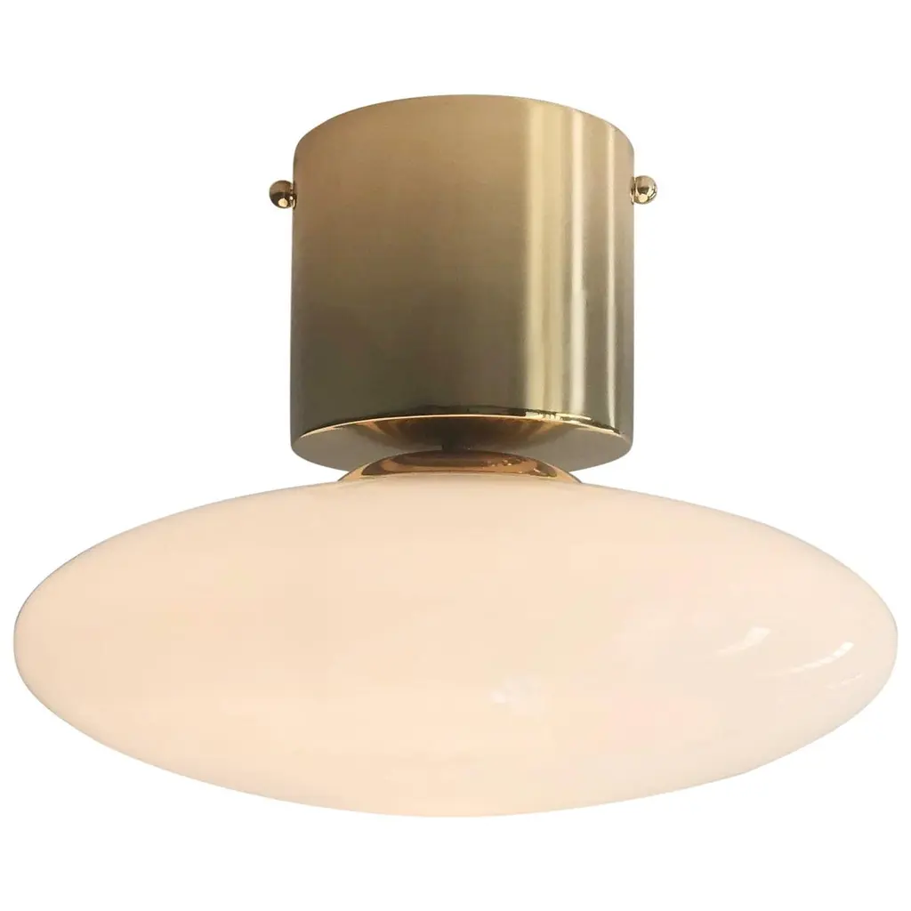 Italian flush mount with Murano glass shade and brass frame / Made in ItalyDesigned by Fabio Ltd, inspired by Angelo Lelli and Arredoluce styles1 light / E12 or E14 type / max 40W eachDiameter: 12 inches / Height: 9.5 inchesOrder only / This item ships from ItalyOrder Reference: FABIOLTD UNO SHADEThe listed price applies to all Brass finishes : Unlacquered Natural Brass, Unlacquered Polished Brass, Lacquered Polished Brass, Lacquered Satin BrassOther finishes available with upcharge of $100: Bronzed, Polished Chrome, Satin Chrome, Polished Nickel, Satin Nickel, Polished Black Nickel, Satin Black Nickel, Polished Copper, Satin Copper
