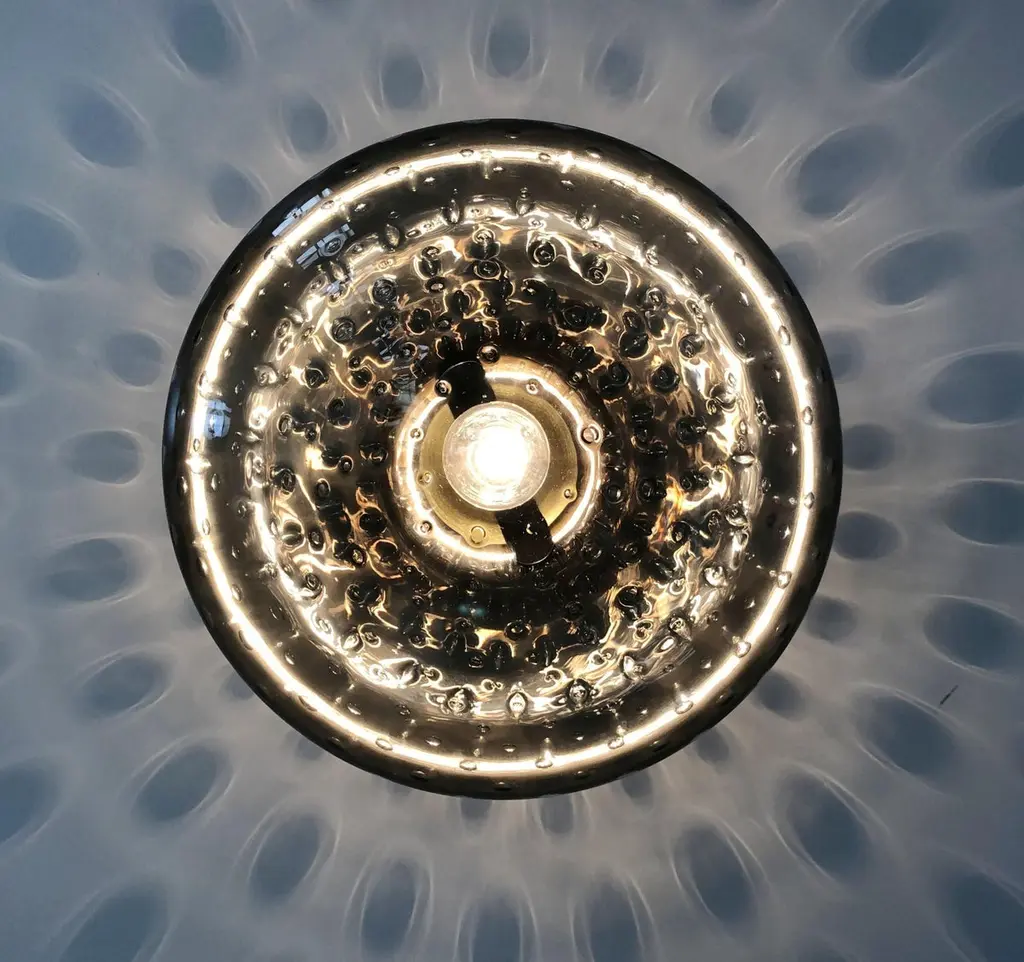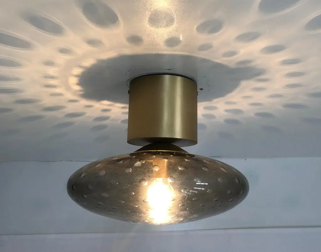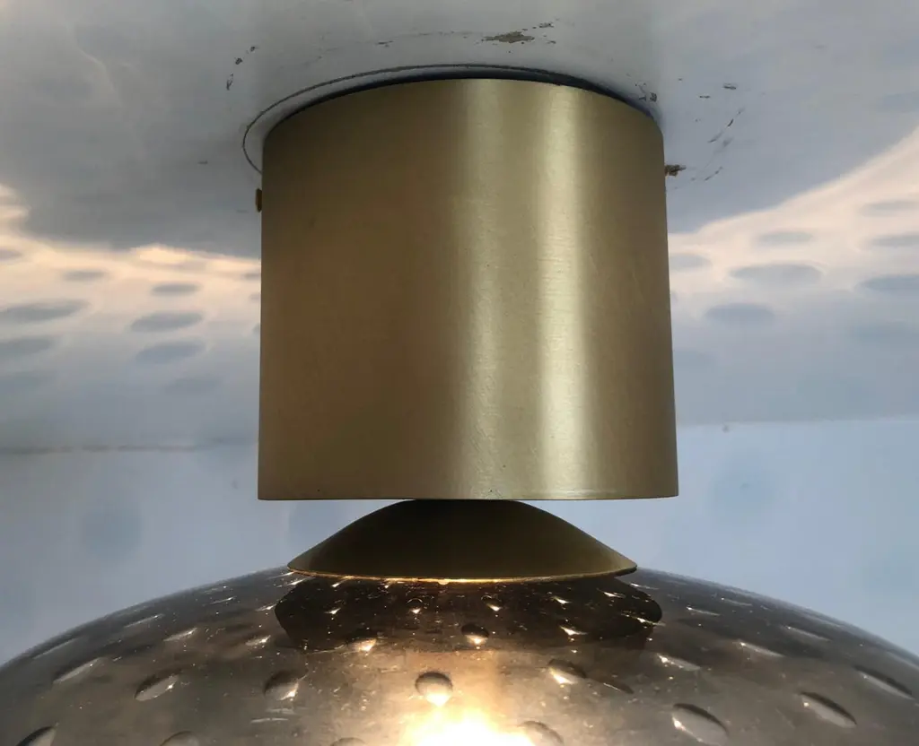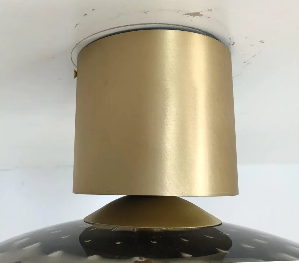 Italian flush mount with Murano glass shade and brass frame / Made in ItalyDesigned by Fabio Ltd, inspired by Angelo Lelli and Arredoluce styles1 light / E12 or E14 type / max 40W eachDiameter: 12 inches / Height: 9.5 inchesOrder only / This item ships from ItalyOrder Reference: FABIOLTD UNO SHADEThe listed price applies to all Brass finishes : Unlacquered Natural Brass, Unlacquered Polished Brass, Lacquered Polished Brass, Lacquered Satin BrassOther finishes available with upcharge of $100: Bronzed, Polished Chrome, Satin Chrome, Polished Nickel, Satin Nickel, Polished Black Nickel, Satin Black Nickel, Polished Copper, Satin Copper