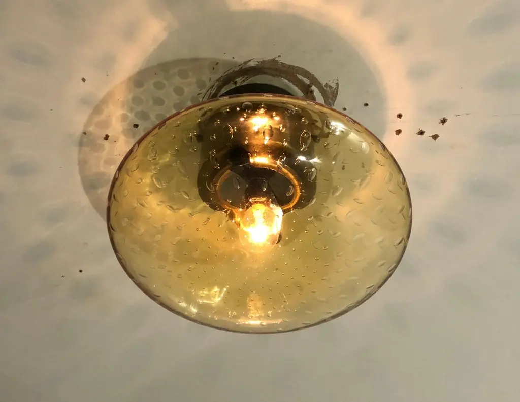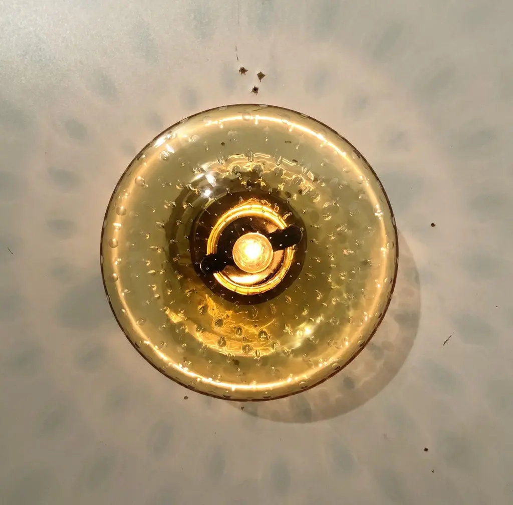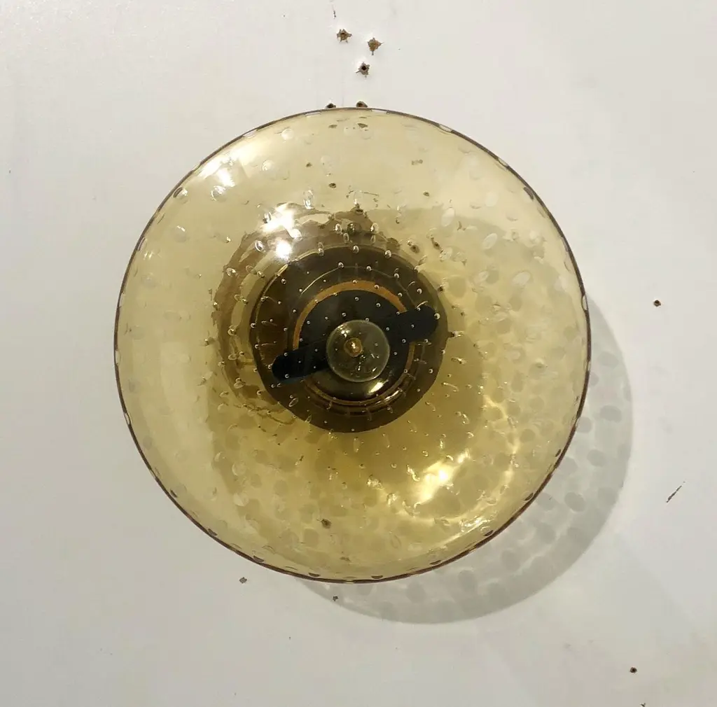 Italian flush mount with Murano glass shade and brass frame shown in satin black nickel finish / Made in ItalyDesigned by Fabio Ltd, inspired by Angelo Lelli and Arredoluce styles1 light / E12 or E14 type / max 40W eachDiameter: 12 inches / Height: 9.5 inchesOrder only / This item ships from ItalyOrder Reference: FABIOLTD UNO SHADEThe listed price applies to the following finishes : Bronzed, Polished Chrome, Satin Chrome, Polished Nickel, Satin Nickel, Polished Black Nickel, Satin Black Nickel, Polished Copper, Satin CopperOther finishes are available : Unlacquered Natural Brass, Unlacquered Polished Brass, Lacquered Polished Brass, Lacquered Satin Brass