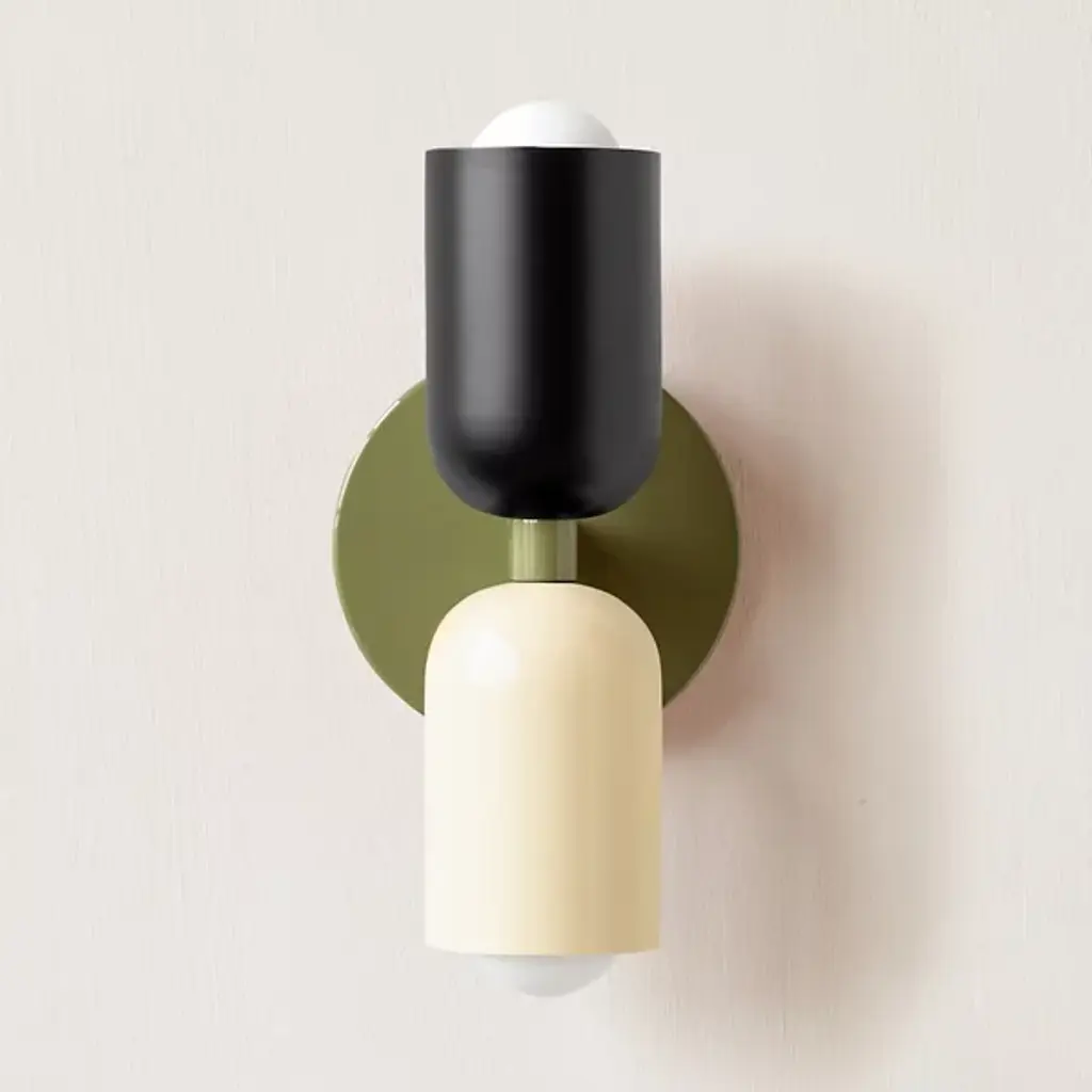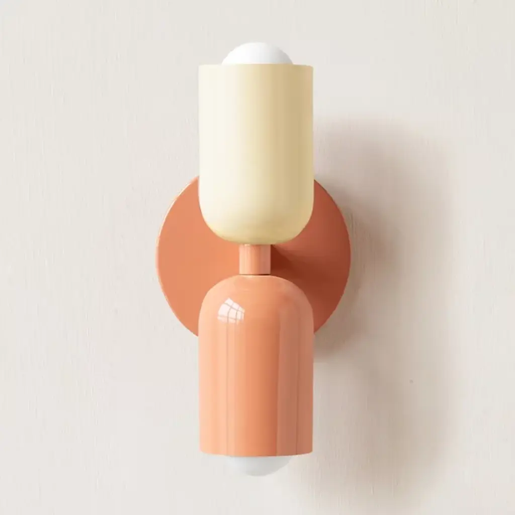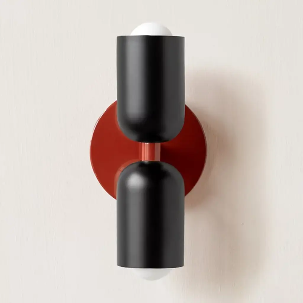 The Up Down Sconce, Slim from In Common With is a versatile piece featuring dome-shaped shades crafted from steel that are intentionally aligned to face opposite directions. The neatly housed diffusers are illuminated by LEDs that emanate an inviting glow. You can quickly adjust the brightness level using a separately sold TRIAC dimmer. Secured by a circular backplate, this USA-made wall scone features a slim design that enhances its contemporary look.