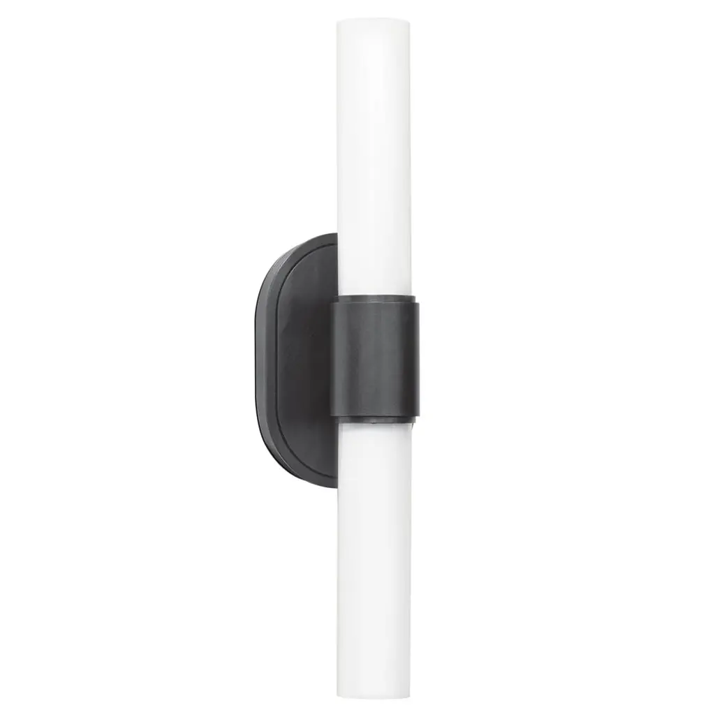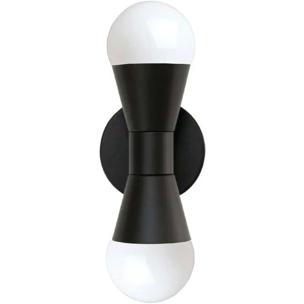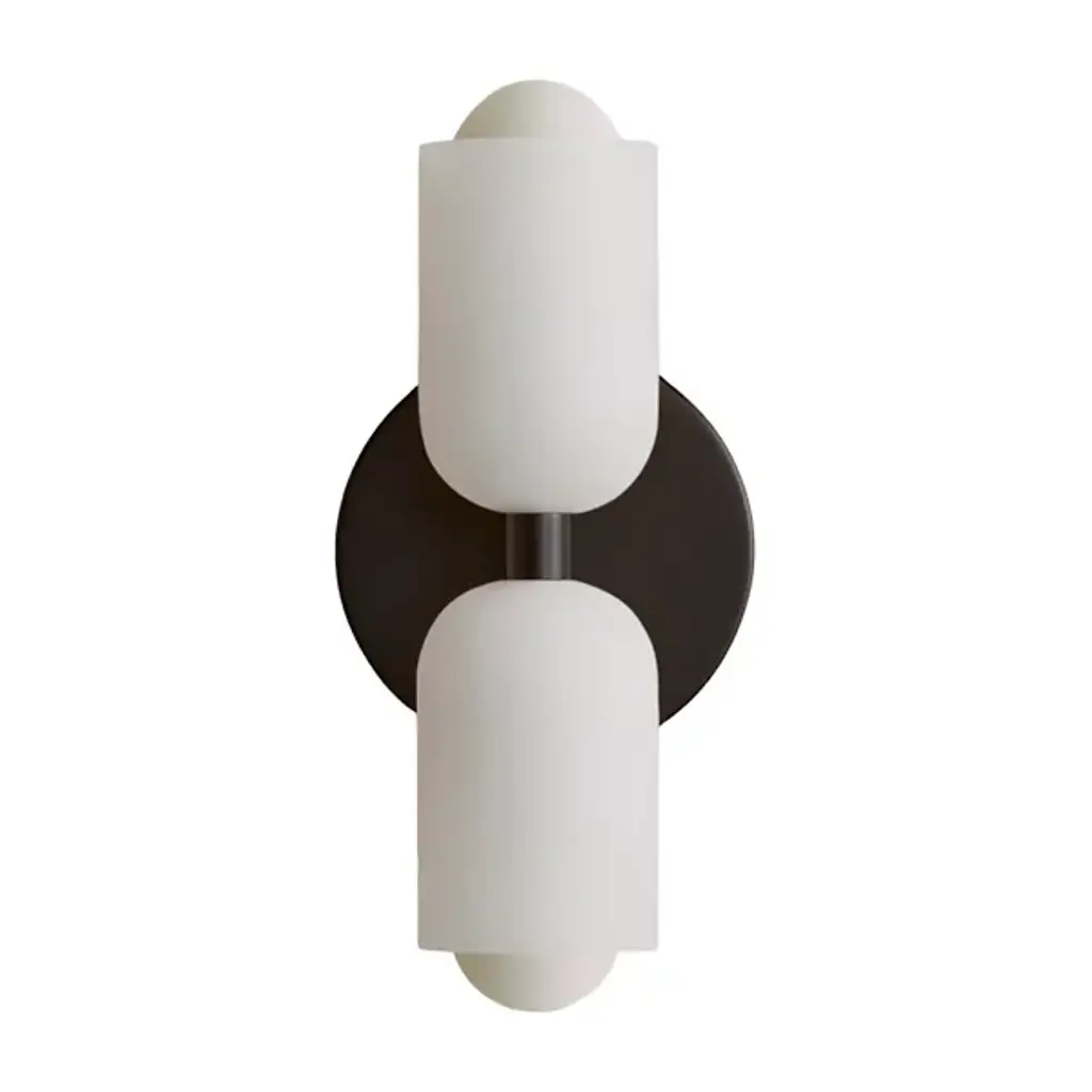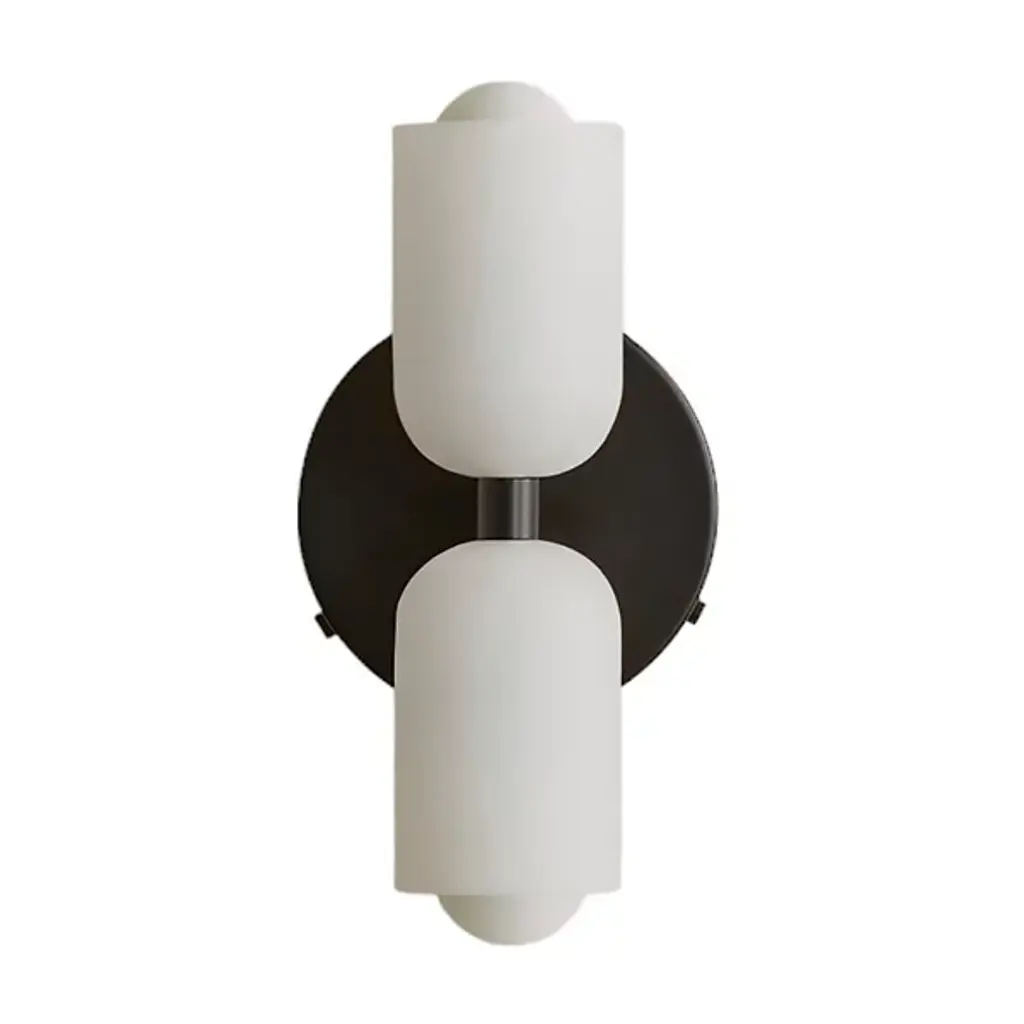 The Up Down Sconce, Slim from In Common With is a versatile piece featuring dome-shaped shades crafted from steel that are intentionally aligned to face opposite directions. The neatly housed diffusers are illuminated by LEDs that emanate an inviting glow. You can quickly adjust the brightness level using a separately sold TRIAC dimmer. Secured by a circular backplate, this USA-made wall scone features a slim design that enhances its contemporary look.