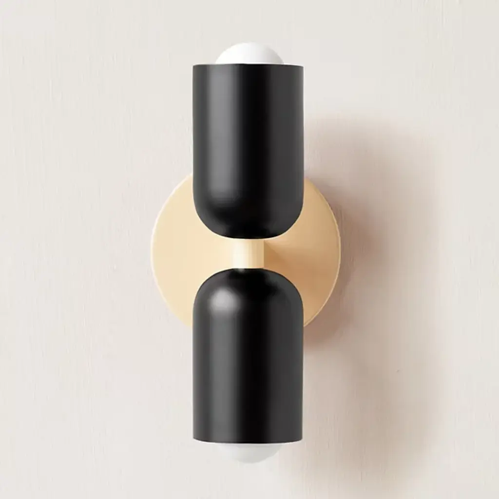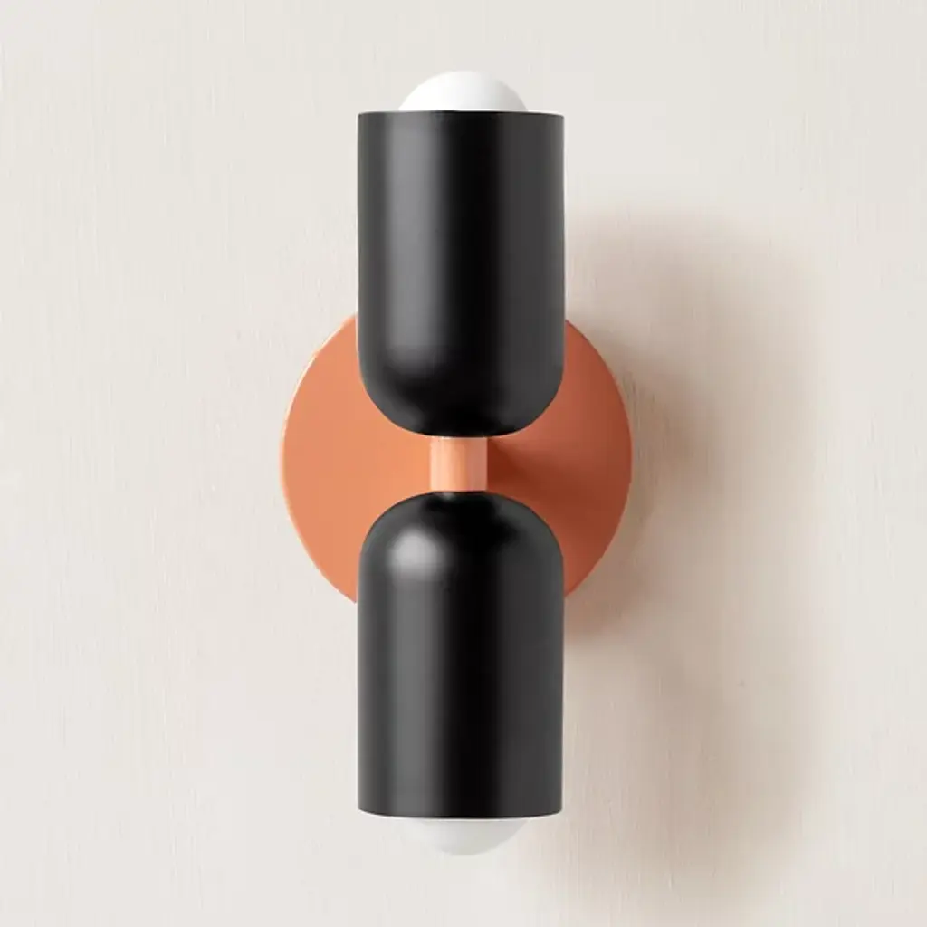 The Up Down Sconce, Slim from In Common With is a versatile piece featuring dome-shaped shades crafted from steel that are intentionally aligned to face opposite directions. The neatly housed diffusers are illuminated by LEDs that emanate an inviting glow. You can quickly adjust the brightness level using a separately sold TRIAC dimmer. Secured by a circular backplate, this USA-made wall scone features a slim design that enhances its contemporary look.