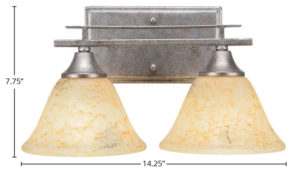 Uptowne 2-Light Bath Bar, Aged Silver/italian Marble