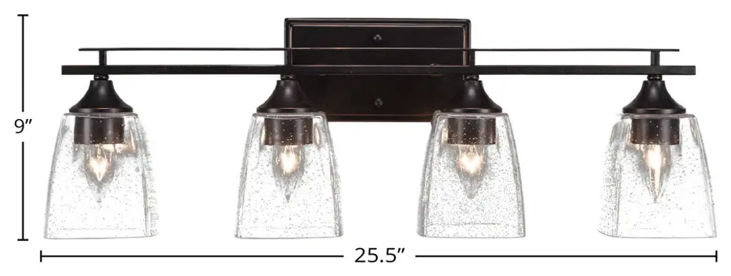 Transform your space with the sleek Uptowne 4-Light Bath Bar. Installation is a breeze - simply connect it to a 120 volt power supply and enjoy. Achieve the perfect ambiance with its dimmable lighting feature (dimmer not included). This energy-efficient light is LED compatible, adding convenience to your lighting choices. Suitable for use with standard medium base bulbs, enjoy easy and seamless set up. Cleaning is a breeze, just use a damp cloth and do not use chemical cleaners. With its streamlined hardwired design, rest assured that this product is made to last. It''s suitable for damp locations and boasts a durable glass shade that ensures even light diffusion. Explore the range of finish, color, and glass size options to find the perfect match for your space.Features:• Easy to install and use with 120 volt power supply• Create the perfect ambiance with dimmable lighting (dimmer not included)• Energy-efficient and LED compatible for long-lasting illumination• Versatile lighting options with compatibility for standard medium base bulbs• Easily maintain cleanliness with a damp cloth, do not use chemical cleaners• Streamlined installation and seamless integration with hardwired design• Safely rated for damp location useDimensions:Bath Bar Light• Assembled Product: 25.5 inches wide x 6 inches deep x 9 inches high• Shade Width: 4.5 inches• Wire Length: 8 inchesRequirements:• Bulb Base: E26• Bulb Type: LED Bulb, IncandescentFor over 40 years, Toltec Lighting has been dedicated to creating extraordinary lighting experiences for our customers. Our extensive online catalogue showcases a diverse range of contemporary and timeless collections, offering over 40 glass shade choices to personalize each fixture to your unique taste. Whether you seek traditional, transitional, or contemporary styles, our fixtures effortlessly complement any decor. With an unwavering commitment to quality, value, and exceptional service, we prioritize your satisfaction by ensuring hassle-free transactions. Toltec Lighting stands proudly as a beacon of reliability and brilliance, and we look forward to illuminating your home for years to come.