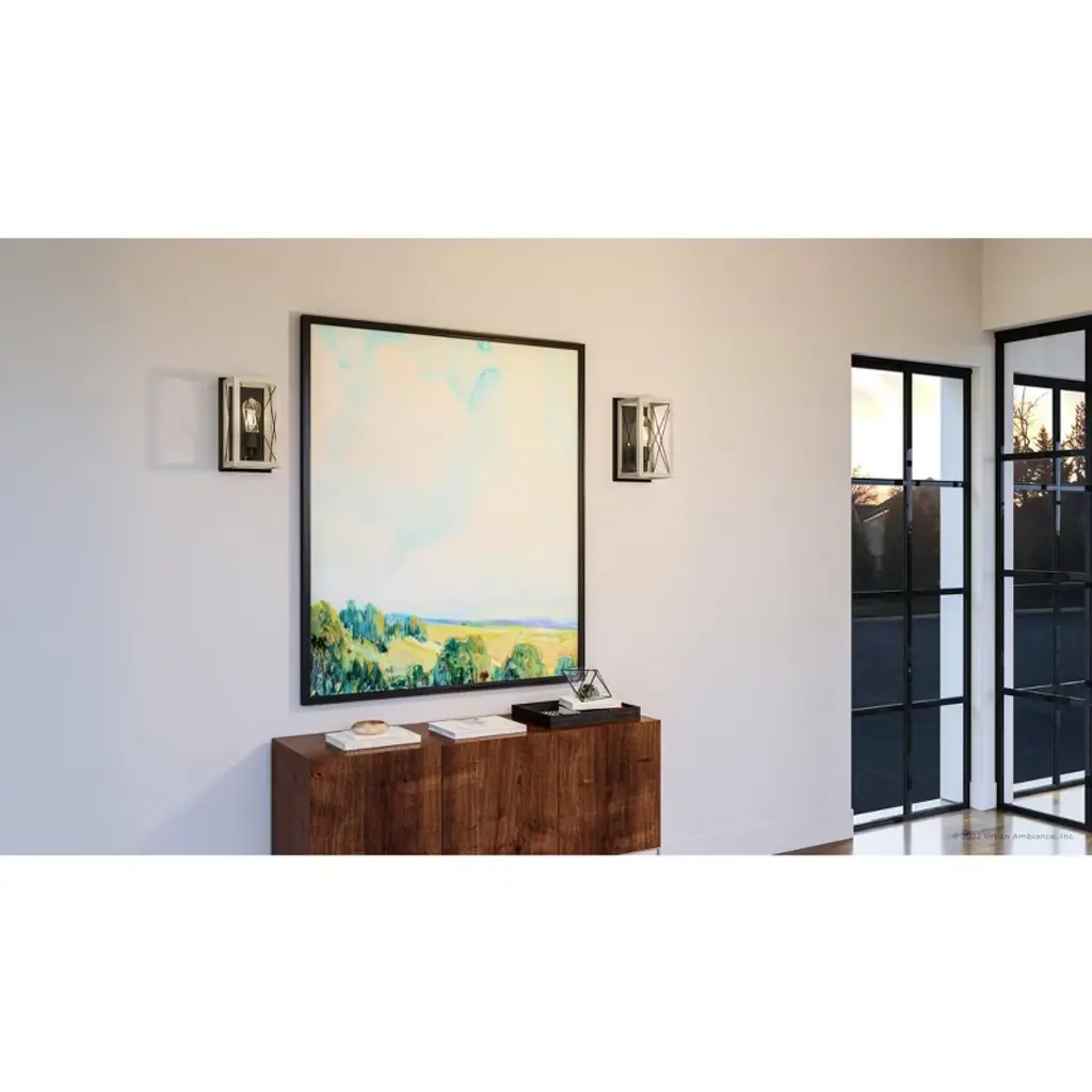 The Berkeley collection brings a farmhouse demeanor to any space thanks to the rustic pattern woven into the design. The geometric construction leverages multiple tones to emphasize the rustic flair alongside the vintage undertones. A thin tapered rectangular plate starts off the design before transitioning into a wood-stained trapezoid framework. The sleek open framework features crosshatch wires around all the open faces but the base. The thin wires add a contrasting design element perfect for matching the encased socket sleeves, and against that dark-hued detail, the vintage-style bulbs stand out beautifully.
