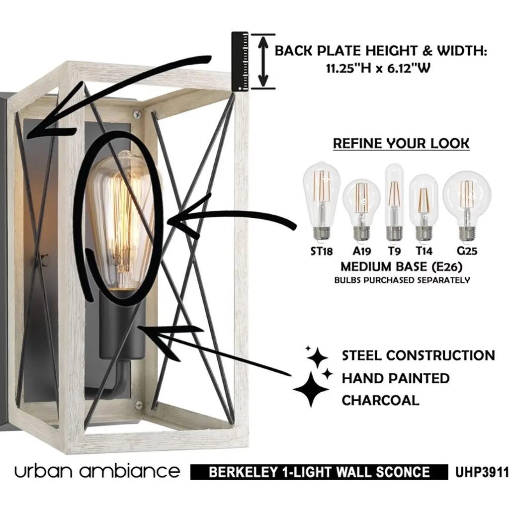 Urban Ambiance Luxury Industrial Wall Sconce 12''h X 6.875''w, Charcoal Finish, Berkeley Collection, Uhp3911