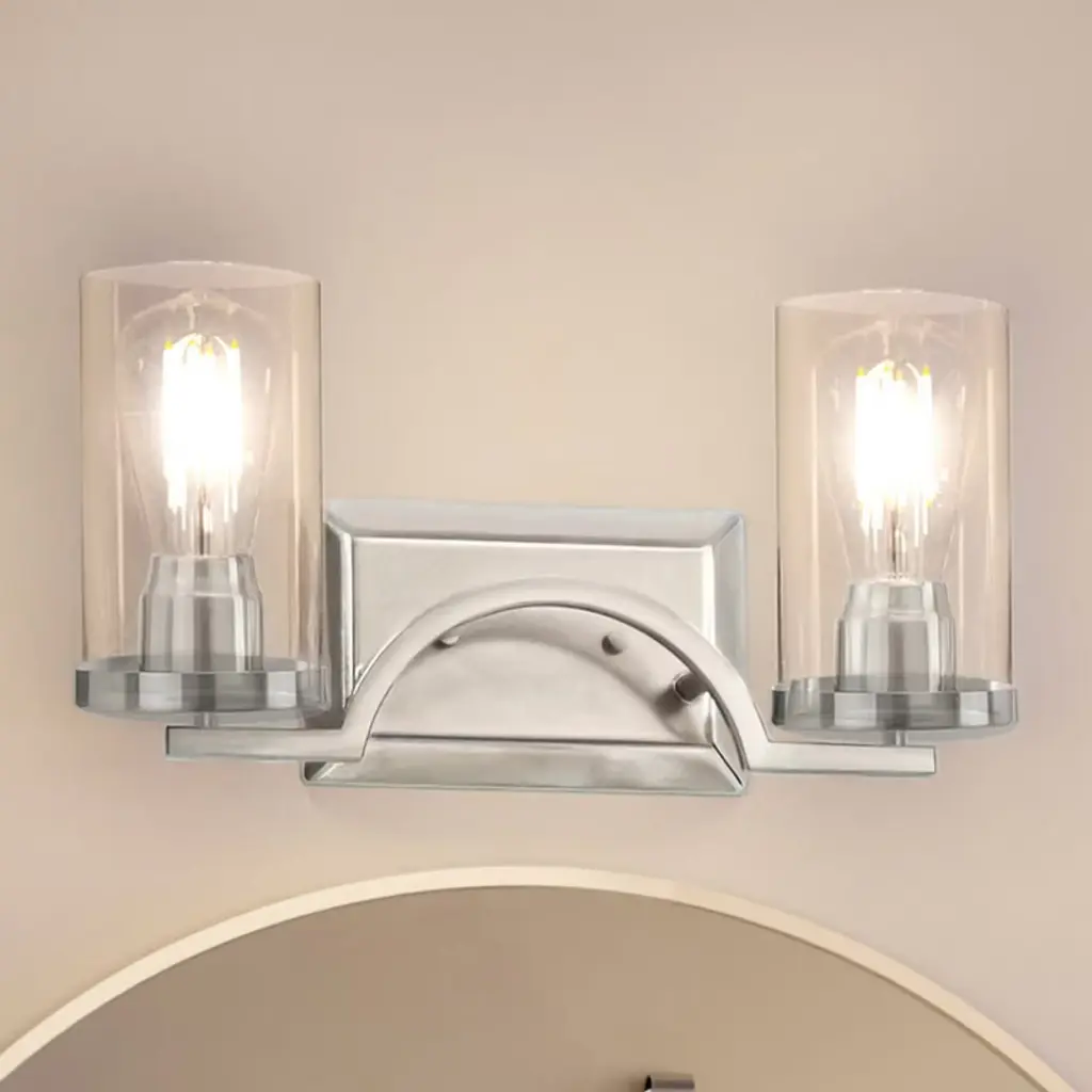 Achieving a perfect blend between vintage intonations and urban elegance, the Esperance Collection of fixtures is a natural fit in “new” Traditional settings. As a staple hall and bath collection, the Esperance Collection is designed to compliment its surroundings, not steal the show. Bathroom fixtures feature an elegant rectangular backplate with convex ends supporting simple pin-style rods which hold up the lights. The socket arms extend past the frames main rod for a touch of modern flair, while the slightly conical clear glass shades are more reminiscent of traditional designs.