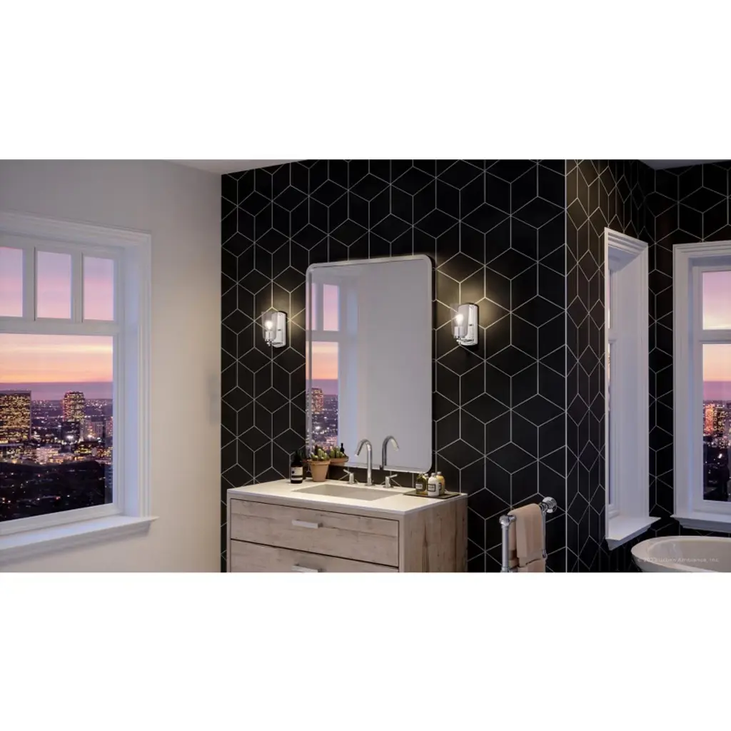 Achieving a perfect blend between vintage intonations and urban elegance, the Esperance Collection of fixtures is a natural fit in “new” Traditional settings. As a staple hall and bath collection, the Esperance Collection is designed to compliment its surroundings, not steal the show. Bathroom fixtures feature an elegant rectangular backplate with convex ends supporting simple pin-style rods which hold up the lights. The socket arms extend past the frames main rod for a touch of modern flair, while the slightly conical clear glass shades are more reminiscent of traditional designs.