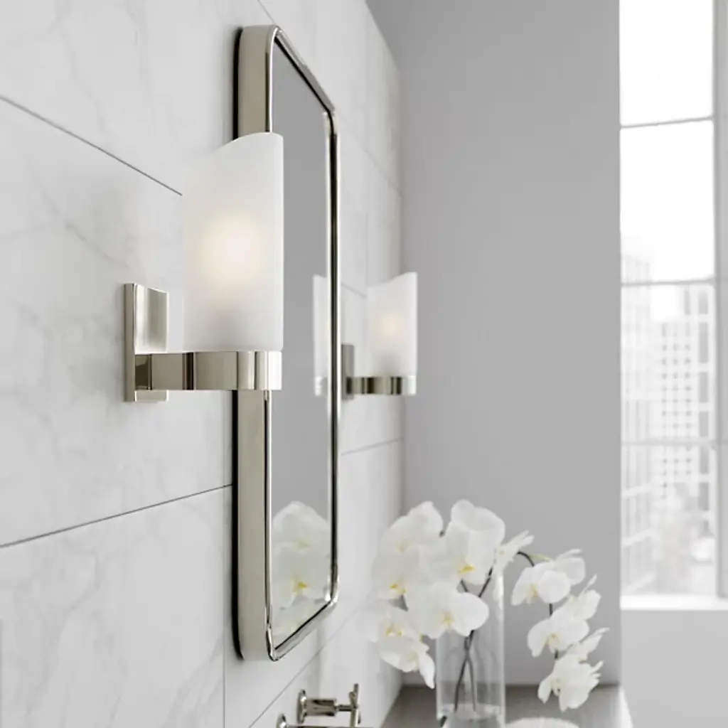 Illuminate your home with the Urbane Wall Sconce by Visual Comfort Signature. Designed by Barbara Barry, this sconce features a cylindrical shade of frosted glass. Inside of this shade rests a brilliant LED which gives your living space a pleasant glow. The shade is supported by a frame of brass and is secured by a backplate. The Urbane Wall Sconce’s streamlined form brings out its contemporary style and reflects Barbara Barry’s desire to create works that are simple yet refined, blending in with your surroundings.