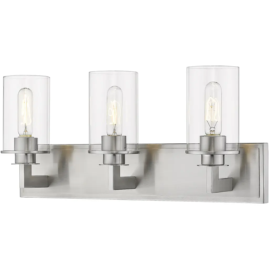 INNOVATIONS 426-3W-PN-G426-8CL Utopia 3 4.75 inch Bath Vanity Light Polished Nickel. Style: Contemporary, Farmhouse, Restoration-Vintage. Collection Name: Downtown Urban. Metal Finish(Body): Polished Nickel. Material: Steel, Cast Brass, Glass. Dimension(in): 12(H) x 4.75(W) x 6.25(Ext). Bulb: (3)6W LED(Included). Voltage: 120. Dimmable: Yes. Color Temperature (Kelvin): 2700. Color Rendering Index (CRI): 90. Lumens: 750. Life Expectancy (Hours): 15000. Glass Shade Description: Clear Utopia. Glass Type: Clear. Shade Shape: Cylinder. Glass or Metal Shade Color: Clear. Shade Material: Glass. Shade Dimension(in): 3.875(W) x 8.25(H). ADA Compliant: No. California Proposition 65 Warning Required: Yes. UL/ETL Certification Type: Damp Location.