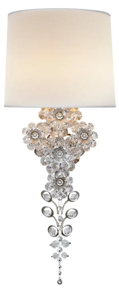 Uttermost Alenya 2-Light Wall Sconce – 22"H x 12"W Burnished Gold with Crystal Leaves and Silken Champagne Shade The Uttermost Alenya 2-Light Wall Sconce is a sophisticated lighting fixture that combines luxury and elegance. Featuring burnished gold metal and golden teak crystal leaves, it adds a decorative touch to any indoor space. Its silken champagne fabric shade with natural slubbing softens light, creating a warm, inviting ambiance. At 22"H x 12"W x 6"D, this sconce is perfect for hallways, living rooms, bedrooms, or accent walls. Compatible with 2 x 60W Type B bulbs (E12 sockets), the fixture provides ample illumination. Bulbs are not included. Designed for indoor use only. Key Features : Elegant Illumination – Two bulbs provide balanced light for indoor accent spaces. Decorative Crystal Detail – Golden teak leaves create a luxurious, eye-catching design. Soft Glow Shade – Silken champagne fabric diffuses light for a warm ambiance. Compact Size – 22"H x 12"W fits most wall spaces without overwhelming décor. Durable Materials – Crafted with iron, crystal, and silk for lasting quality.