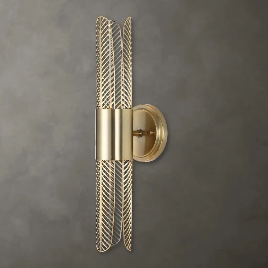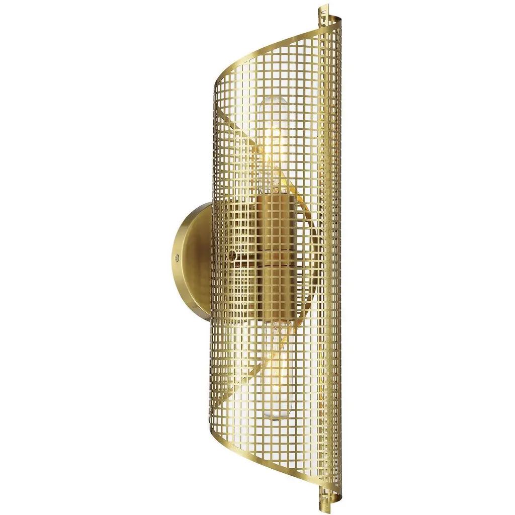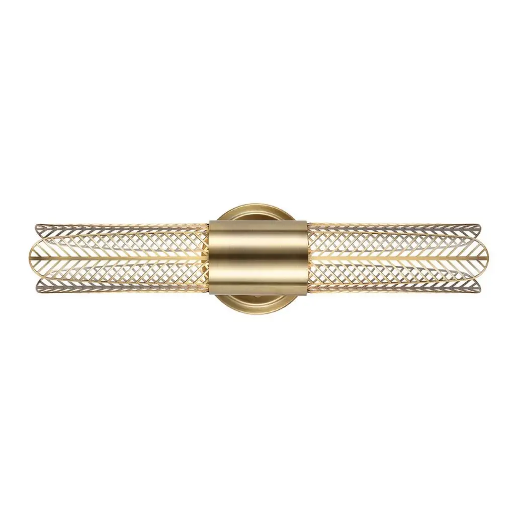 The Cret 2 Light LED Brass Sconce brings a bold yet refined elegance to any wall with its Art Deco-inspired geometry and craftsmanship. The oxidized brass finish enhances the unique silhouette of its cutout-style shades, offering striking visual texture through hand-applied detailing and natural variation. Key Features: Striking Art Deco design with oxidized brass finish Cutout metal shades with subtle hand-applied variations Integrated 16W LED, 3000K, CRI 93, 1440 Lumens, 50,000 hour life Mount horizontally or vertically, ideal for bathroom vanities Dimensions: 18 H X 5 W X 5 D (in), Weight: 4 lbs