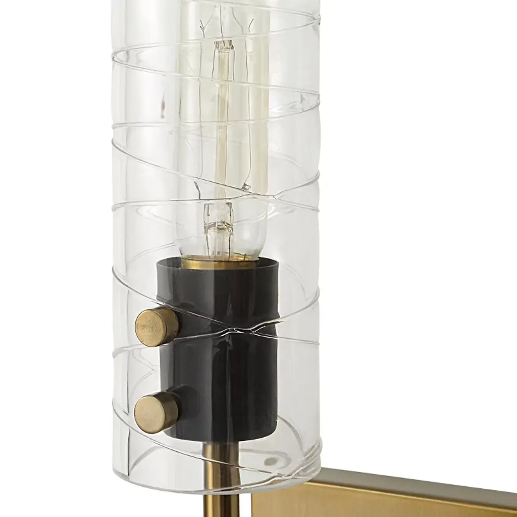 Uttermost Telesto 1-Light Wall Sconce – 22"H x 4.5"W Black and Antique Brass Glass Shade Contemporary Style The Telesto 1-Light Wall Sconce brings a soft contemporary look to any indoor space. Its straight lines and linear glass design create an eye-catching focal point. Finished in textured black with antique brass accents, this sconce complements modern and transitional decor styles. Includes narrow clear glass cylinders with swirled thread detailing. Compatible with 1-60W Edison bulb (not included) for versatile illumination. Key Benefits : Contemporary Design – Soft, linear lines with clear glass cylinders for a stylish accent. Durable Materials – Crafted from steel and glass with a textured black and antique brass finish. Easy Installation – Compact small parcel packaging makes mounting safe and hassle-free. Energy-Conscious – Compatible with LED bulbs for efficient lighting. Indoor Accent – Perfect for hallways, living rooms, or bedroom