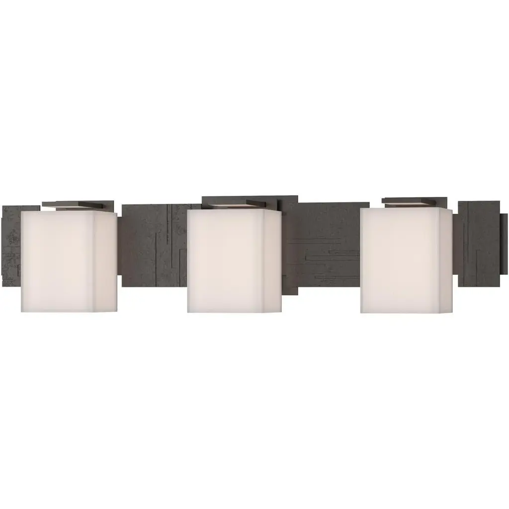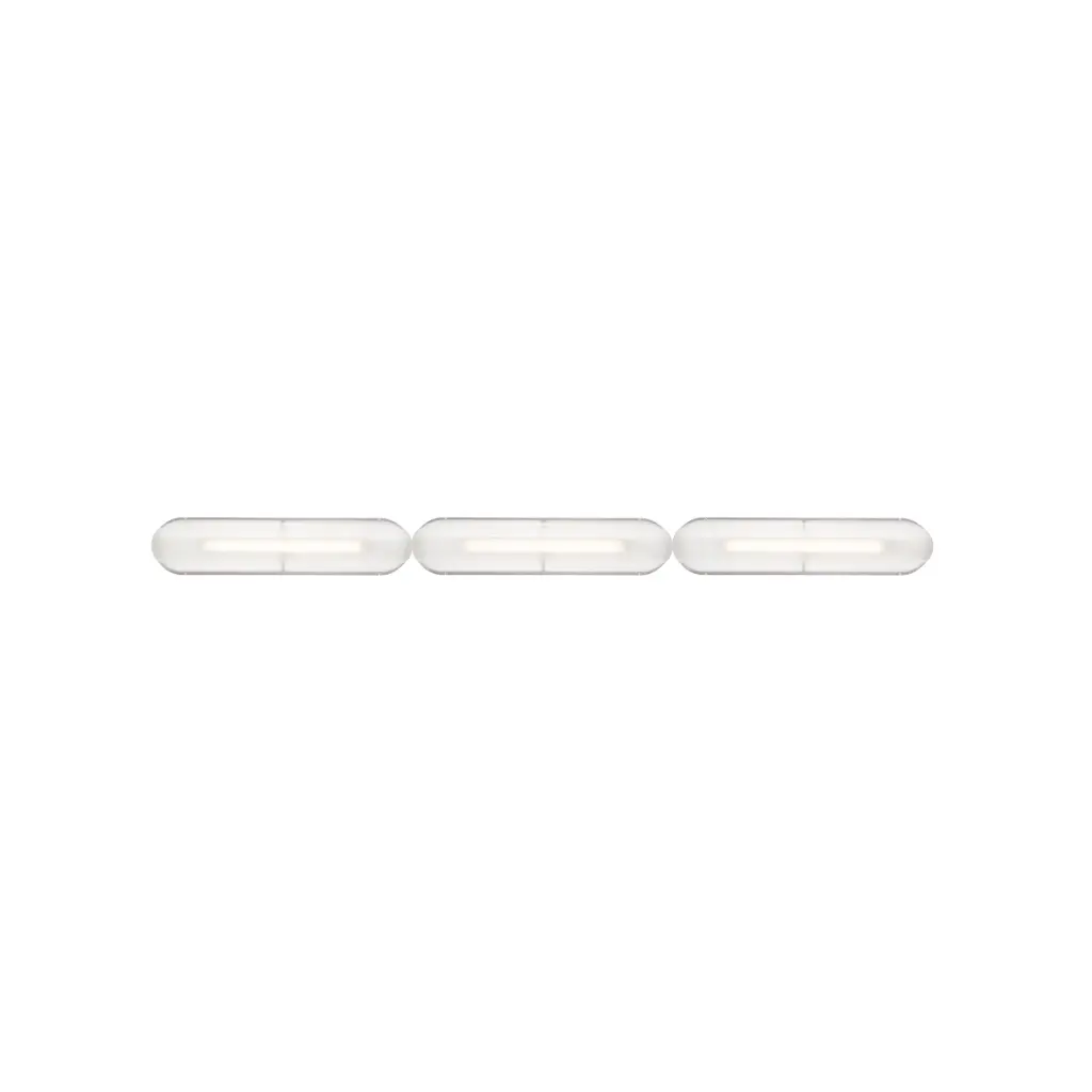Oriented horizontally, this version of designer Caine Heintzman's sculptural Vale series places multiples of the LED fixture in a linear formation. Ranging from a pristine single model to a jaw-dropping 6 units placed end-to-end, each light is flush-mounted to the wall or ceiling with a low-profile aluminum backplate in anthracite, silica or rust finish. Topped by a heat-molded acrylic lens with a textured surface, its prismatic effect evenly distributes soft ambient illumination.