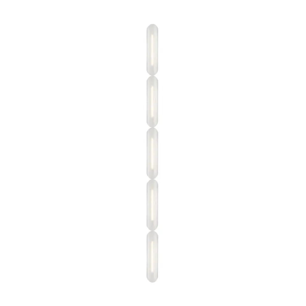 Lined up vertically on the wall or ceiling, designer Caine Heintzman's Vale adds a variant with multiples of his sculptural LED fixture. From a sole unit all the way to an expanse of 6 modules, each light attaches flush to the wall or ceiling with a low-profile aluminum backplate in anthracite, silica, or rust finish. The curving front diffuser in heat-molded, textured acrylic creates a prismatic effect that leaves a soft glow of ambient illumination.