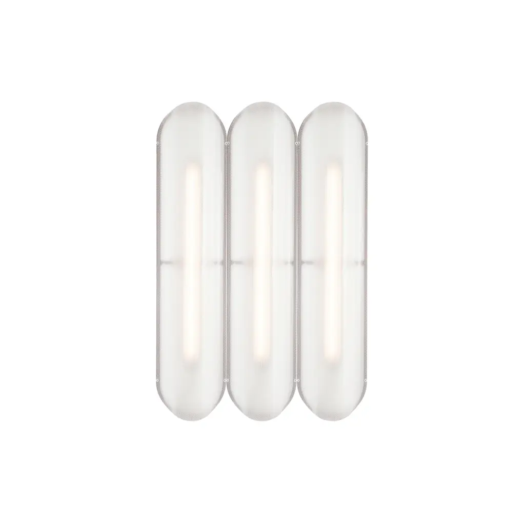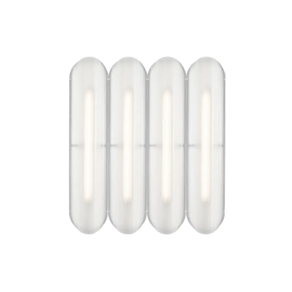 Vale from designer Caine Heintzman also comprises a vertically situated version featuring multiples of the sculptural LED light deployed side-by-side. From a sole model to an awesome bank of 6 fixtures, each light attaches flush to the wall or ceiling with a low-profile aluminum backplate in anthracite, silica or rust finish. The curving front in heat-molded acrylic with a textured surface creates a prismatic effect for softly glowing illumination.