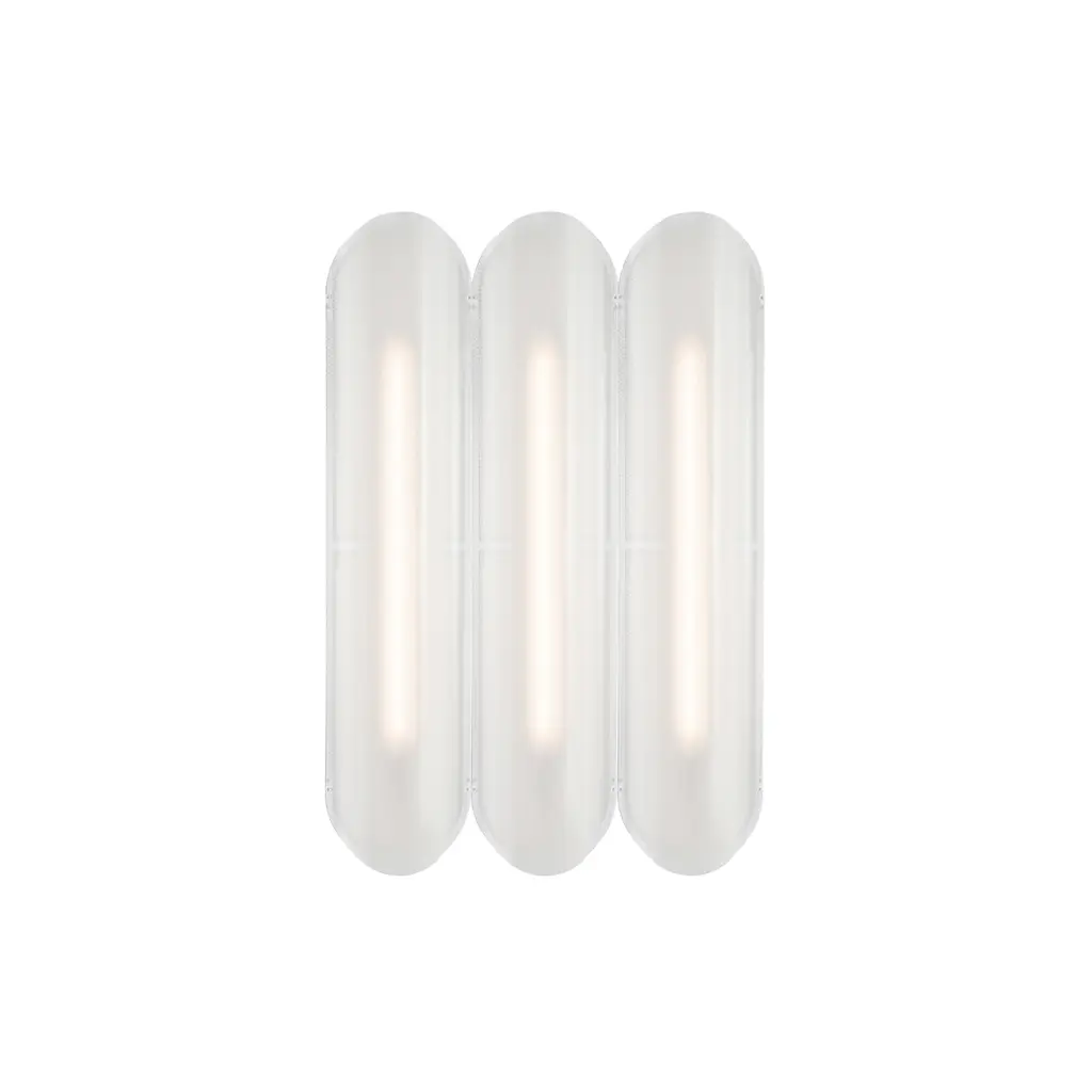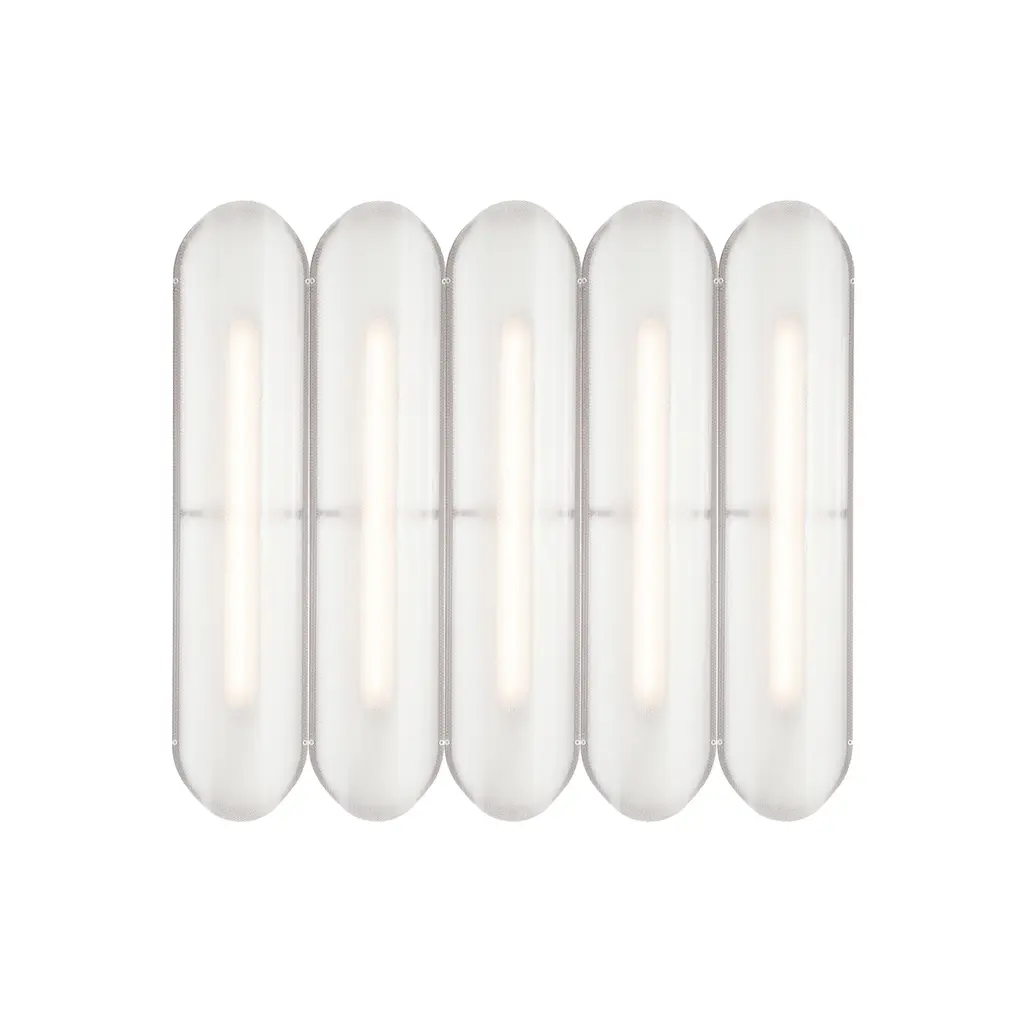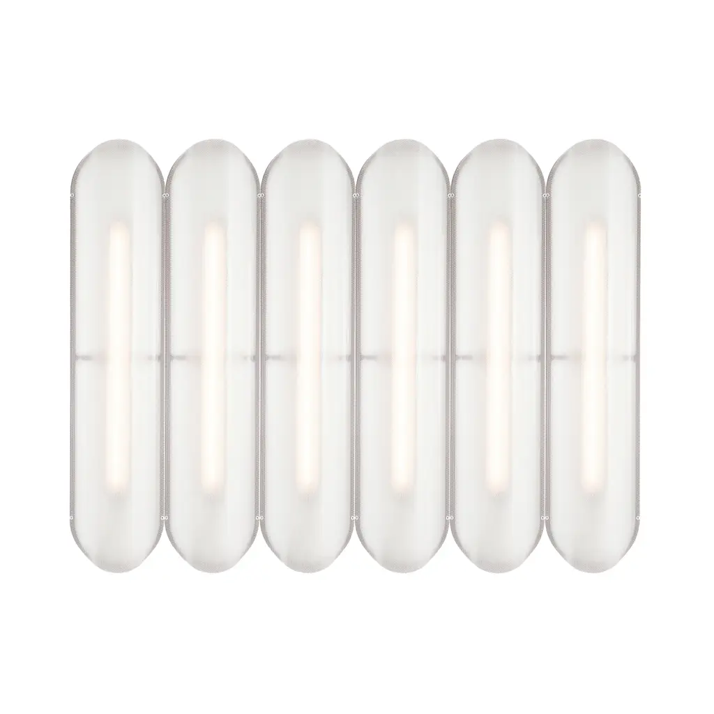 Vale from designer Caine Heintzman also comprises a vertically situated version featuring multiples of the sculptural LED light deployed side-by-side. From a sole model to an awesome bank of 6 fixtures, each light attaches flush to the wall or ceiling with a low-profile aluminum backplate in anthracite, silica or rust finish. The curving front in heat-molded acrylic with a textured surface creates a prismatic effect for softly glowing illumination.