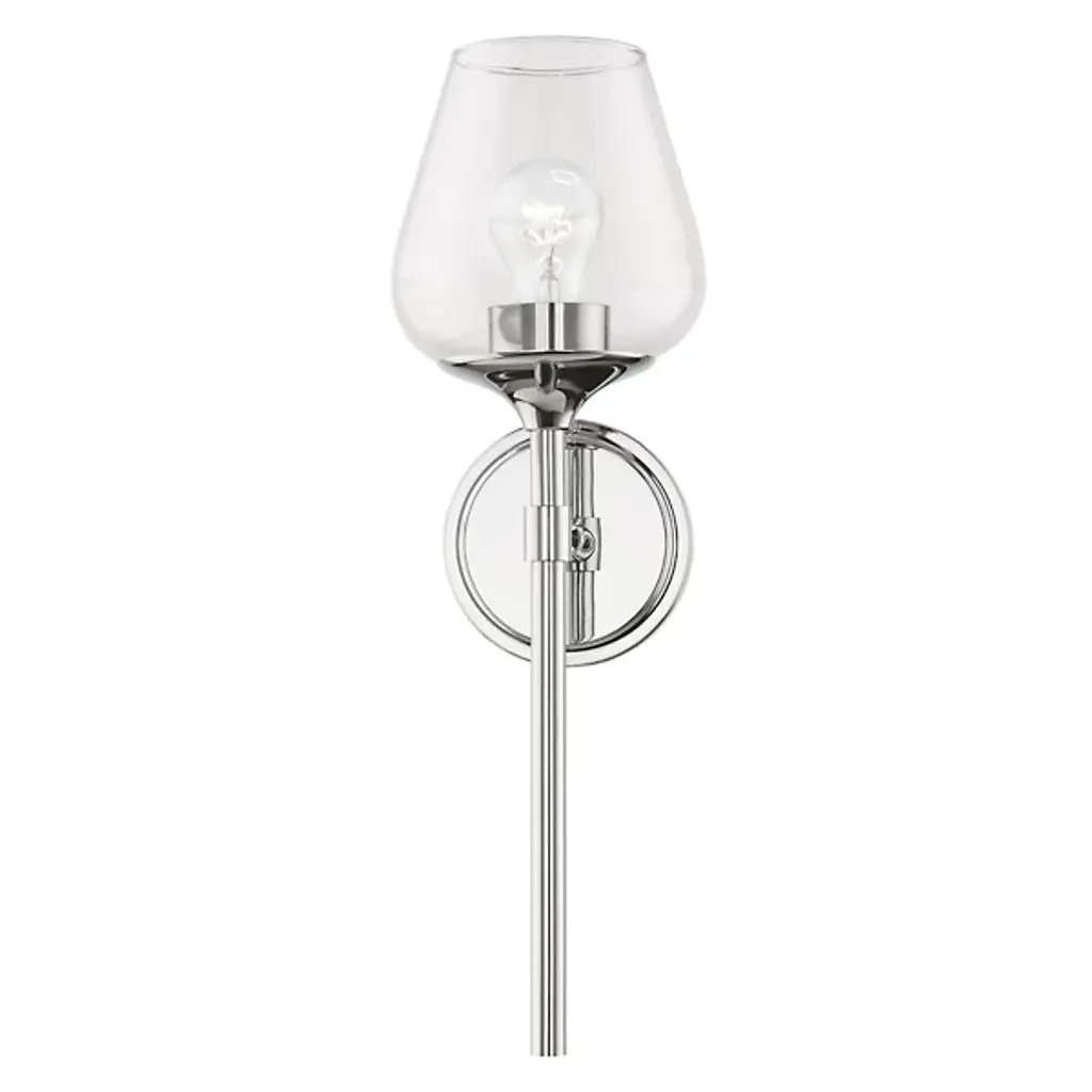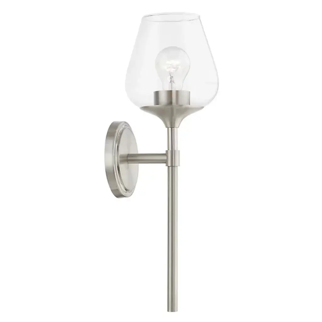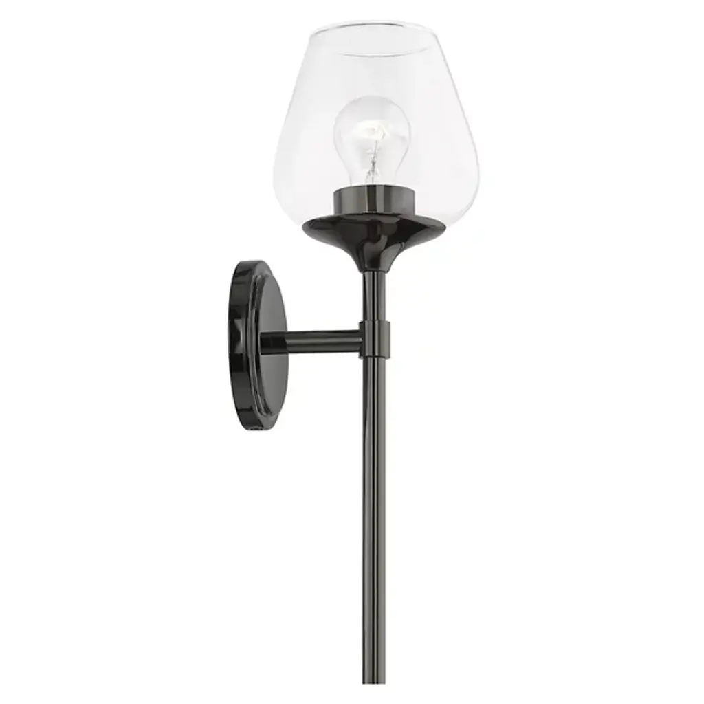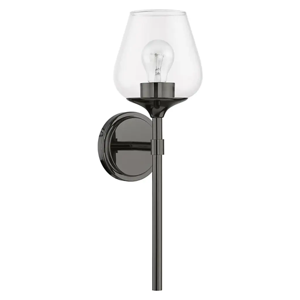 The Valentina Wall Sconce by Alder & Ore has understated elegance. It features minimal details and clear curved glass with and metal framework, bringing a transitional aesthetic to your home décor. This fixture’s incandescent lamp is supported by an ultra-slim arm. The neat contours of the glass shade gives this piece a look of refinement.