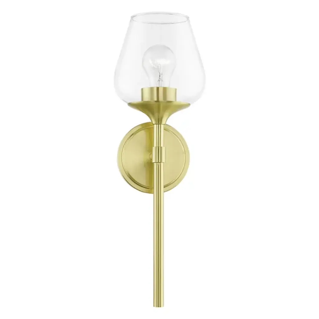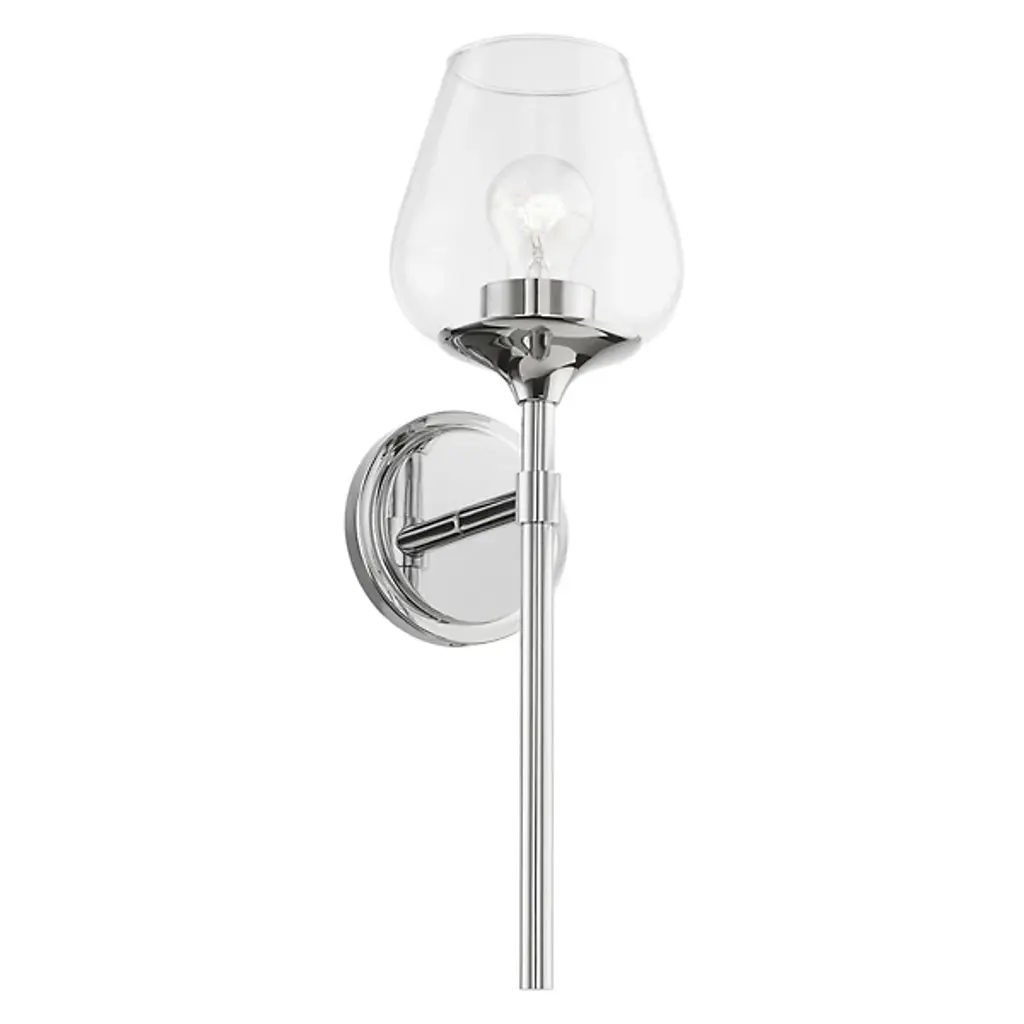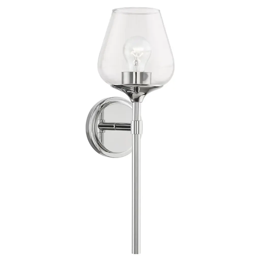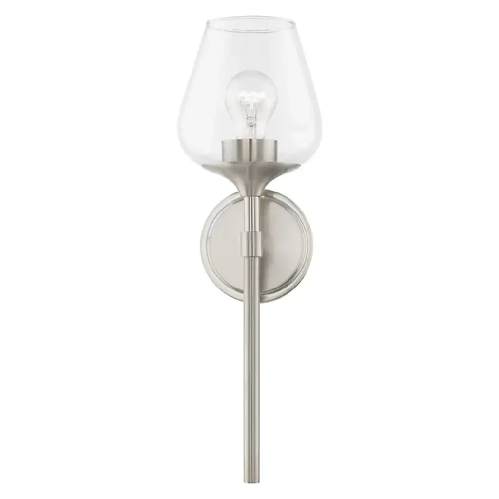 The Valentina Wall Sconce by Alder & Ore has understated elegance. It features minimal details and clear curved glass with and metal framework, bringing a transitional aesthetic to your home décor. This fixture’s incandescent lamp is supported by an ultra-slim arm. The neat contours of the glass shade gives this piece a look of refinement.