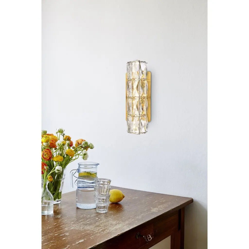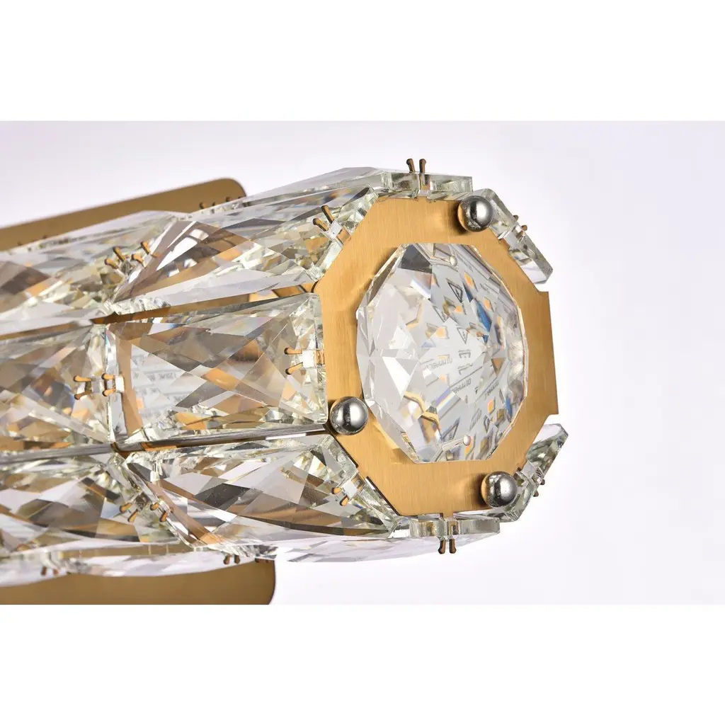 Valetta hanging fixtures dress up a living room, dining room, or bedroom without overwhelming the surrounding décor. This collection features an octagonal tube-shaped stainless-steel frame that’s covered almost entirely with shining rectangular clear crystals. A rectangular mounting plate is connected to the frame by slender cables that keep everything secure. A sleek metal finish completes this modern look with warm led lighting. Available in three sizes.