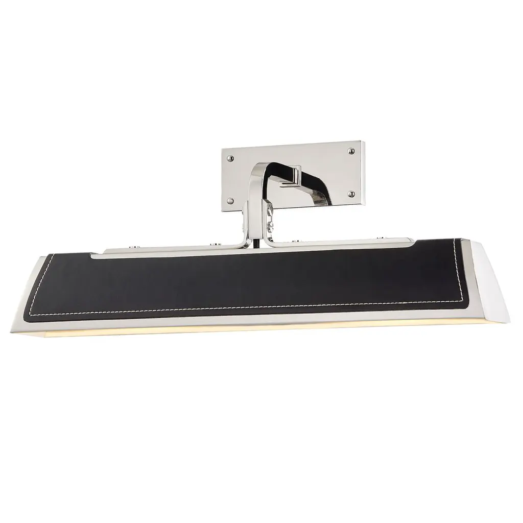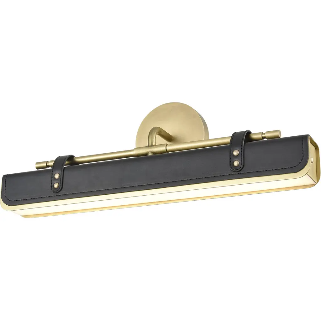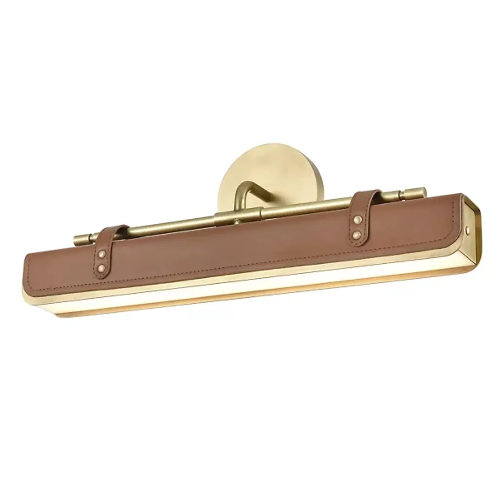 The Valise LED Wall Sconce by Alora is a tailored and modern fixture. A rectangular silhouette is supported by a smooth circular wall plate and rounded arm. Inspired by vintage luxury luggage, the exterior is covered with premium Vegan Leather that features a stitching detail that runs along the edges as the metal body underneath peeks out with rounded edges. An LED light source provides an even downlight from this handsome piece that is completed with some simple grommet details.