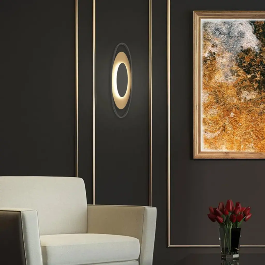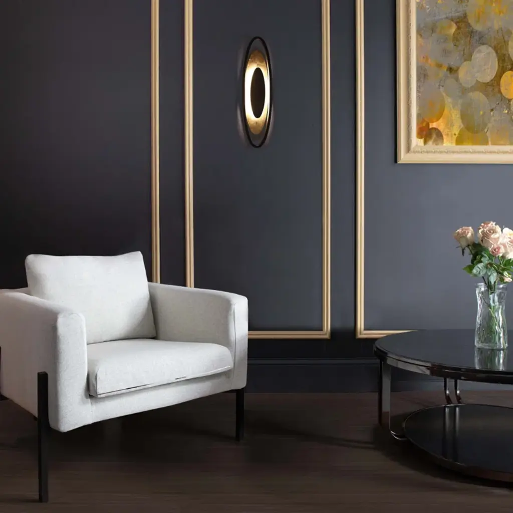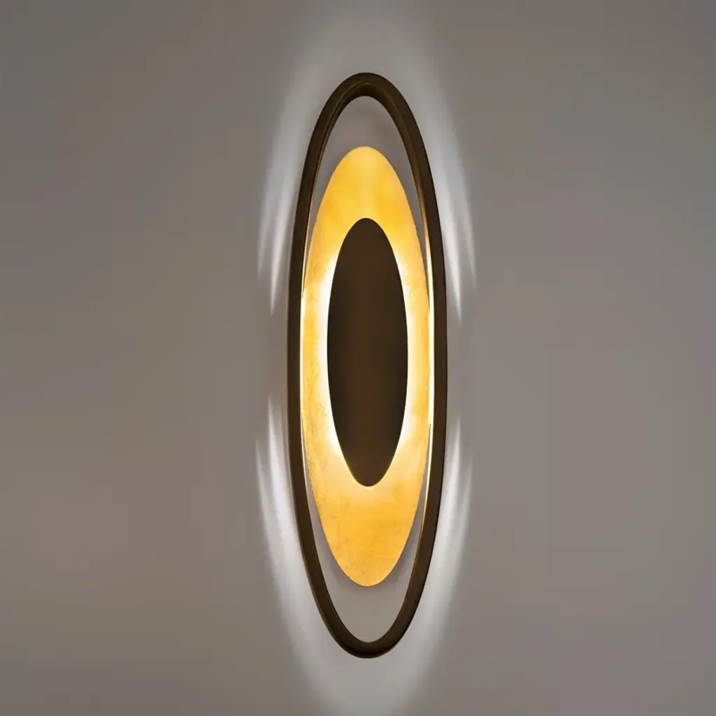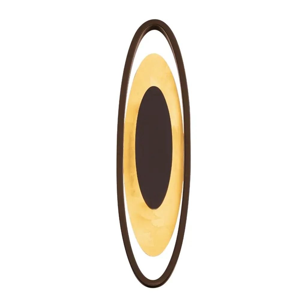 This mesmerizing sconce sets a tone of elegance with hand-applied gold leafing and concentric bronze ovals. Inspired by deco artwork, this classic LED luminaire complements your space with creativity and reimagination.