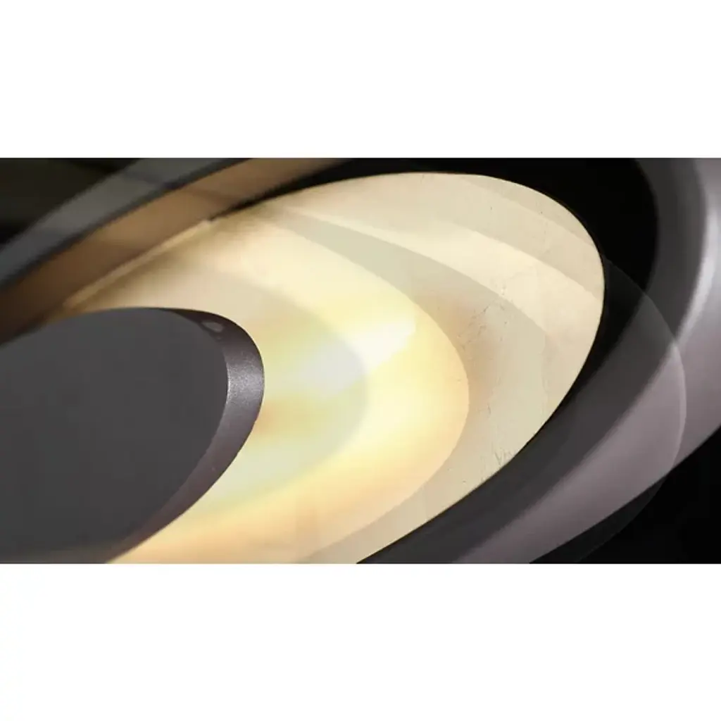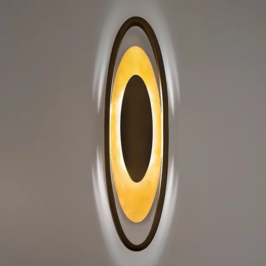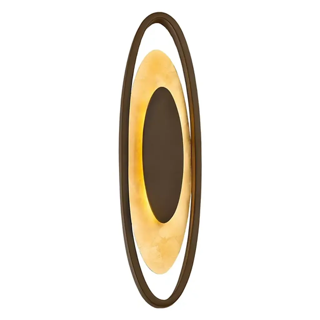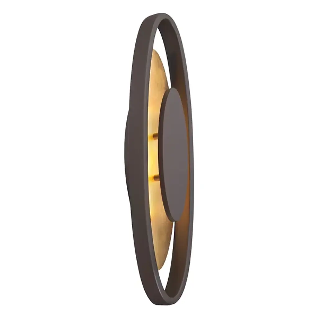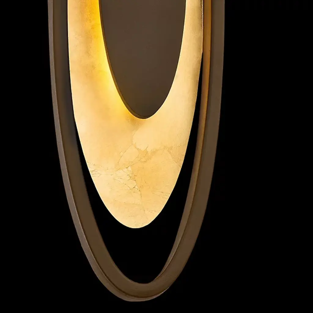 A piece of functional art designed for visual impact with or without the lights on. Mark your room as a sophisticated space with the Valor LED Wall Sconce from Modern Forms. The sconce presents you with a mesmerizing composition of repeating shapes inspired by deco artwork. The oval shapes surprise as they appear to float in the air. Like a bullseye, the sconce focuses the eye to the center, marked by an aluminum oval shape. A frosted acrylic shape wraps around the aluminum oval for a comfortable, glare-free experience and amplified style. With a shimmering leaf foil applied by hand to the acrylic, it gives off an opulent look. When turned on, LED light filters out as a warm glow, creating a bold silhouette marked by the aluminum oval frame.