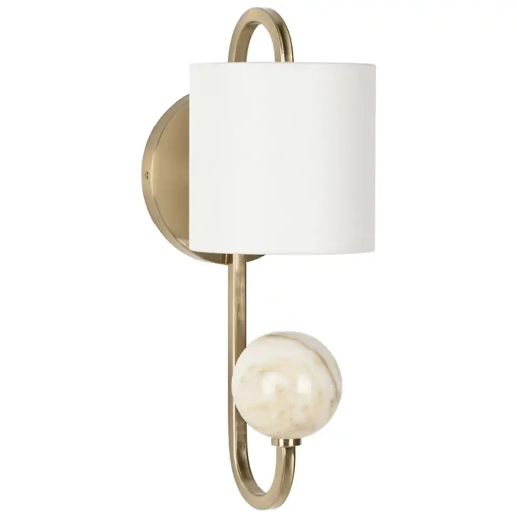 Enhance your space with the refined elegance of the Varese Wall Sconce from Wildwood, a perfect blend of sophistication and artistry. Its gracefully curved arm introduces a sense of movement, adding fluidity and depth to any room. The focal point of this striking fixture is a Calacatta marble sphere, showcasing exquisite veining and rich texture, bringing a touch of natural luxury. Timeless yet modern, this sconce is ideal for creating a statement in hallways, bedrooms, or living spaces.