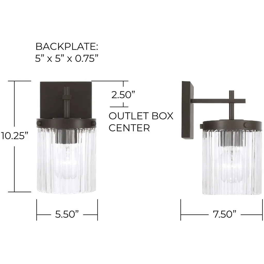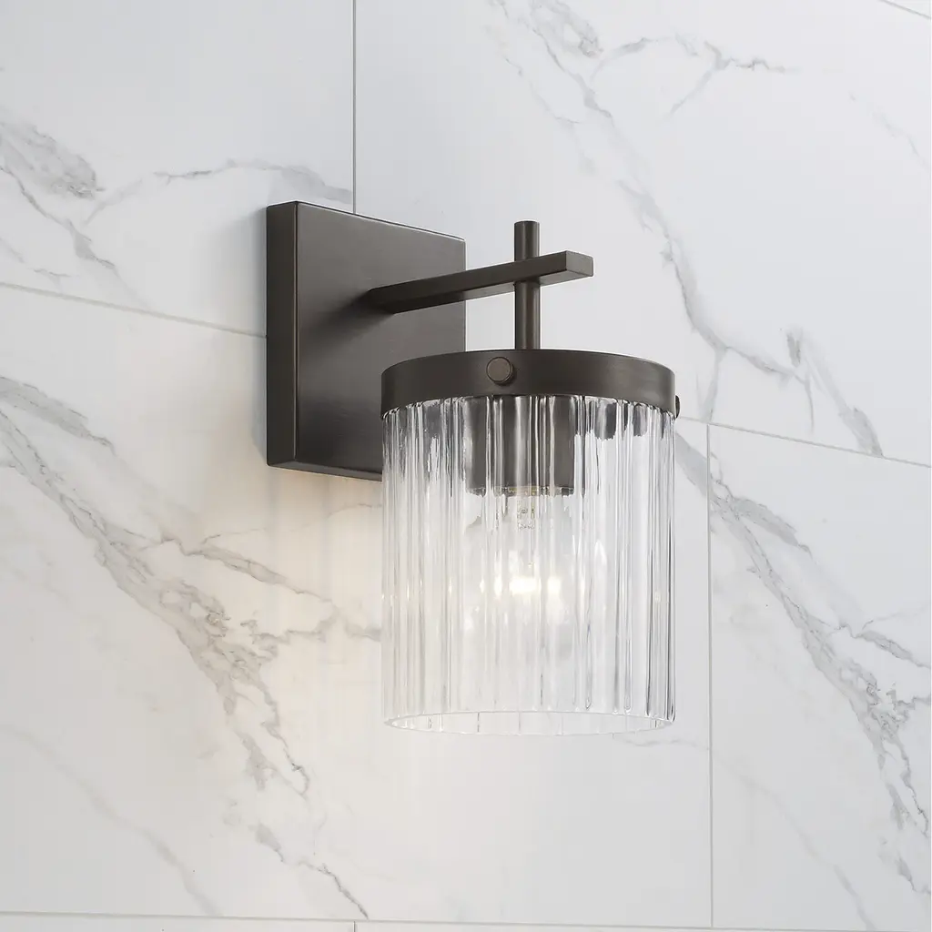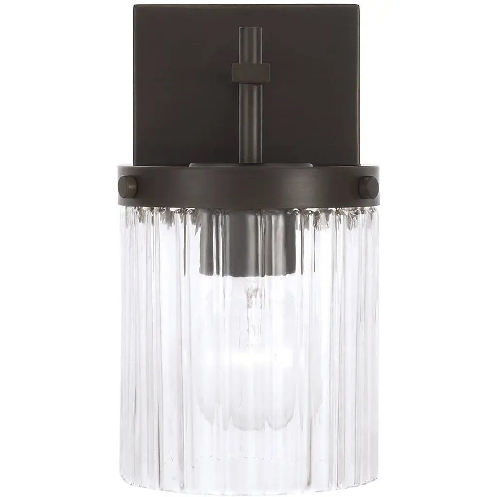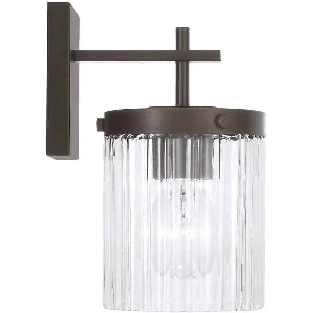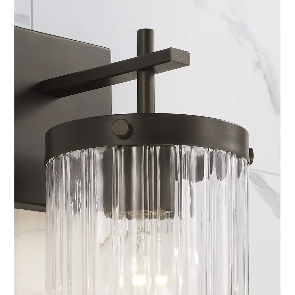 Invite stunning illumination to any space with the Vaughn Sconce. Held by sleek, intersecting arms, the Beveled Fluted glass creates captivating texture against the cylindrical silhouette, while the Oil Rubbed Bronze finish offers a refined, timeless aesthetic.