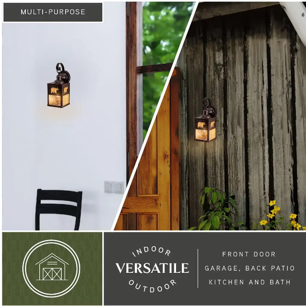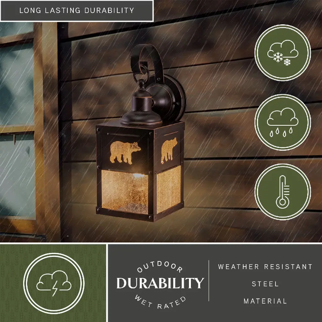 Vaxcel 1 Light Burnished Bronze Rustic Outdoor Wall Lantern Clear Glass, Bear, 13 Inch