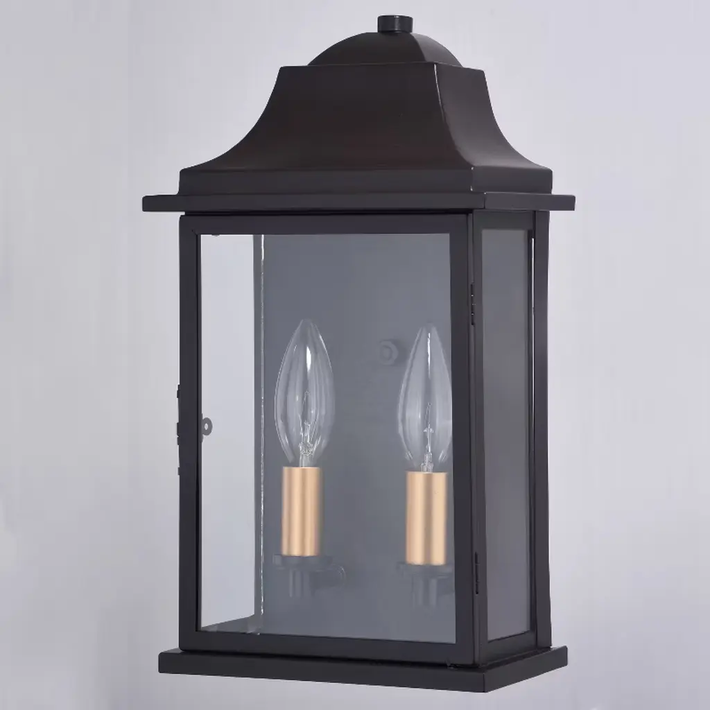 Vaxcel Bristol 2 Light Bronze Outdoor Wall Lantern Clear Glass