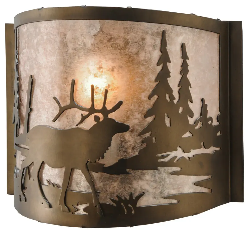 Collection: Bryce, Material: Steel, Finish Color: Burnished Bronze, Width: 2.5", Height: 4.5", Depth: 2.5", Lamping Type: Incandescent, Number Of Bulbs: 1, Wattage: 100 Watts, Dimmable: Yes, Moisture Rating: Wet Rated, Desc: Evoking the spirit of the wilderness, this rustic themed light is clad in a burnished bronze finish and features silhouetted deer imagery atop glowing white tiffany style glass. The classic form of this lamp makes it a great choice for a vacation lodge, cabin or a suburban home - it will complement a variety of home styles: anywhere you want to bring an element of nature. Medium screw base lamping provides maximum light output, and flexibility in bulb choice. This versatile light is outdoor damp rated and can be used indoors as well as outdoors. Mount these lights on your porch, hallway, or entryway and experience this stylish look for yourself. Burnished bronze finish offers a distinctive look and quality steel construction Amber flake glass provides bright ill