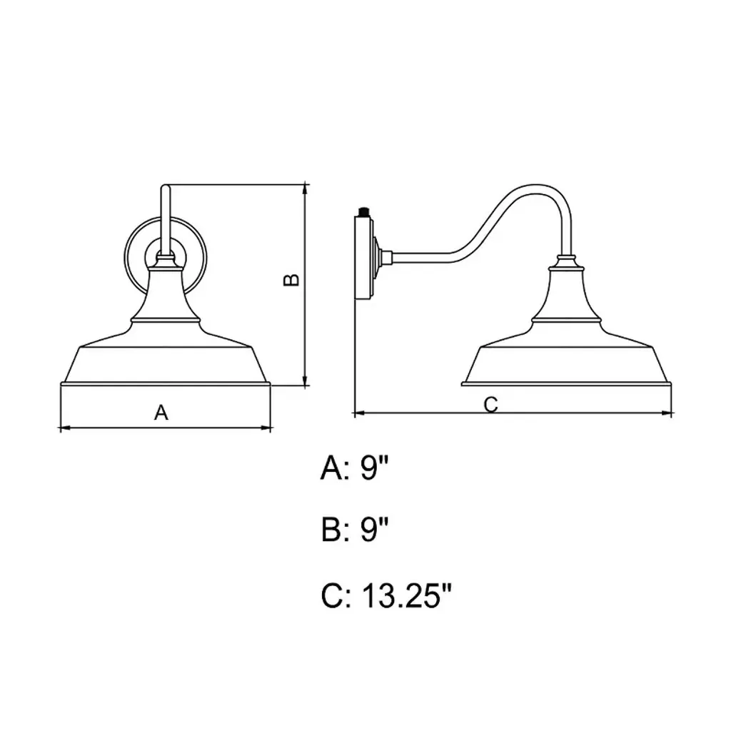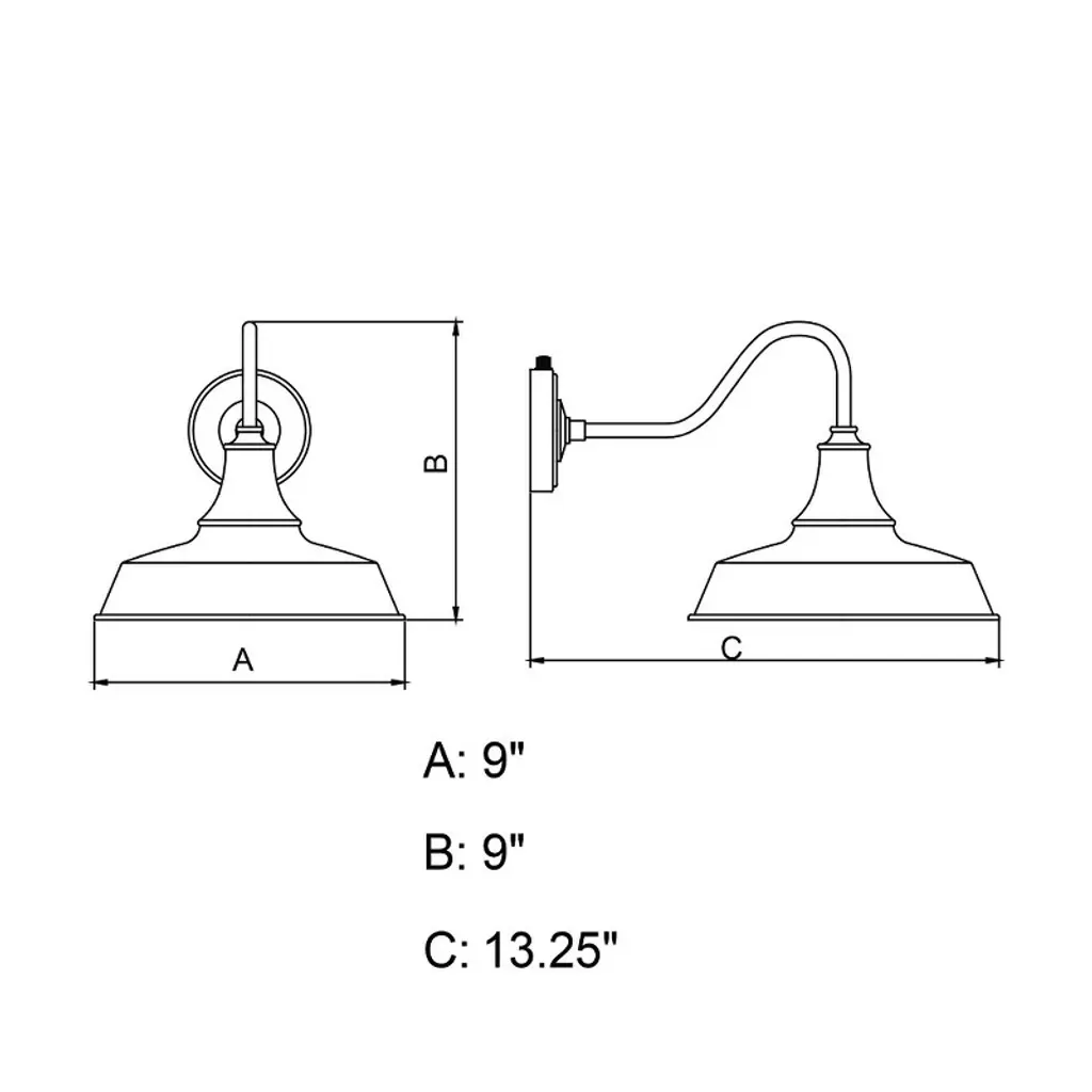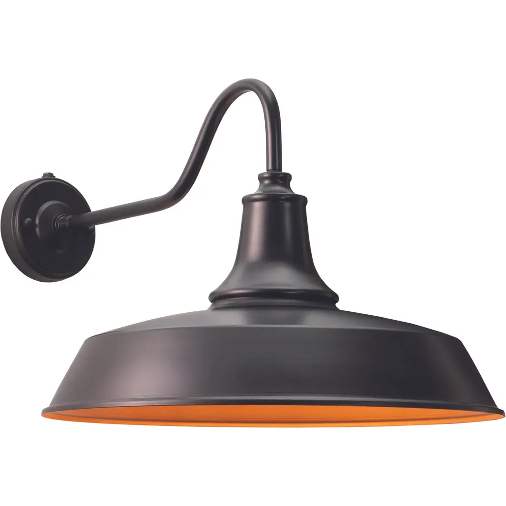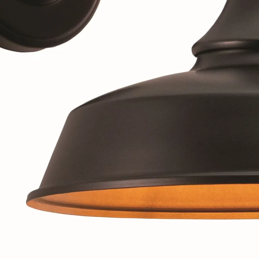 Collection: Dorado, Material: Steel, Finish Color: Dark Bronze, Width: 6.5", Height: 13.75", Depth: 7.75", Height From Outlet Box: 2.75", Backplate Width: 4.53", Backplate Length: 5.91", Lamping Type: Incandescent, Number Of Bulbs: 1, Wattage: 60 Watts, Moisture Rating: Wet Rated, Desc: Utility and style come together in the Dorado collection. This farmhouse inspired duo is a versatile collection where light is the hero. Large open shades offer the maximum light in your outdoor spaces (and indoor too). The Dorado is dark sky compliant and will add a touch of style and flair throughout your home. It has a built-in dusk to dawn photocell that automatically turns the light on at dusk and turns it off at dawn, saving energy during daylight hours. Mount these barn lights on your porch, entryway, or garage and experience this stylish look for yourself. Assembly Required: Yes / Back Plate Height: 5.91 / Back Plate Width: 4.53 / Bulb Shape: A19 / Shade Included: Yes. ,