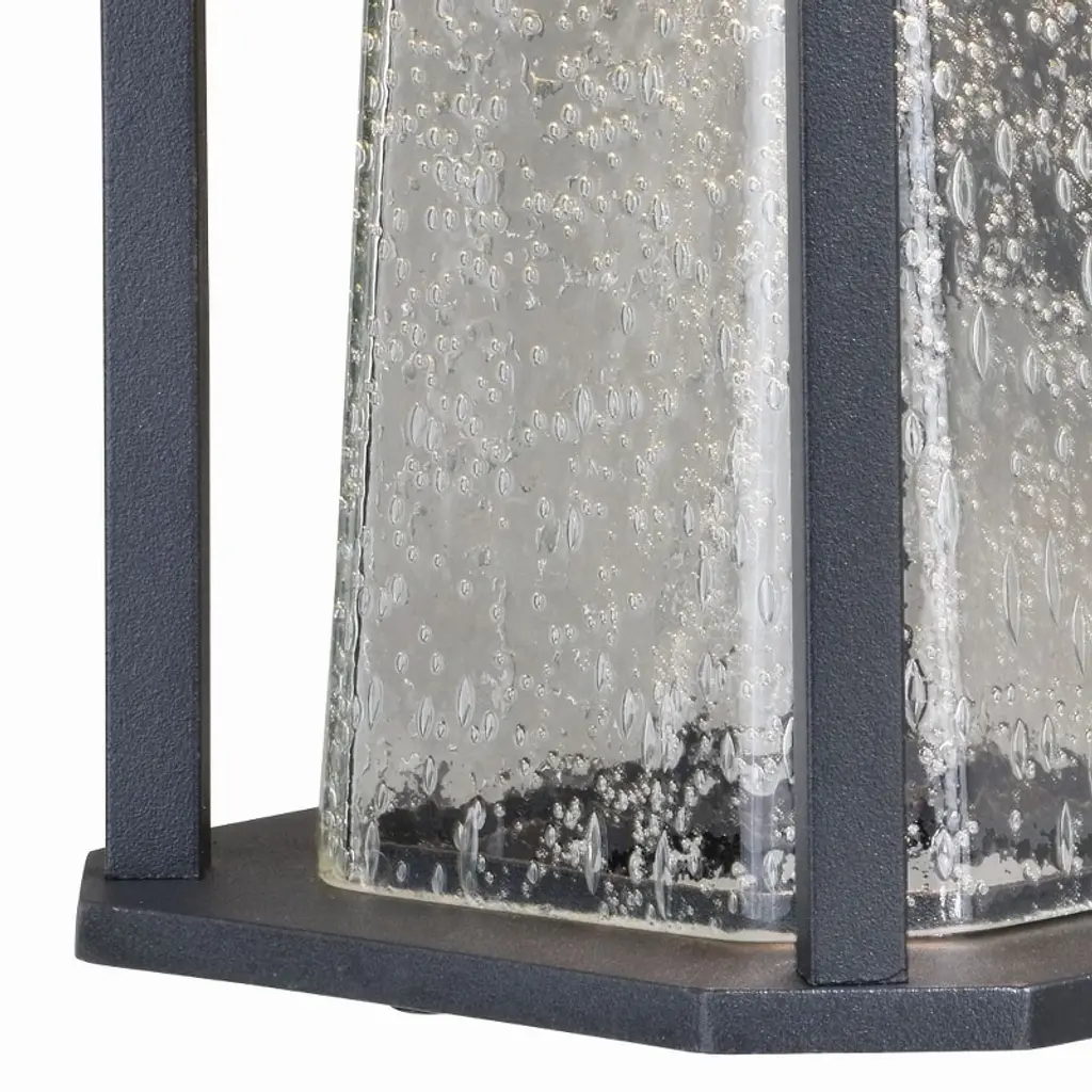 Collection: Freeport, Material: Aluminum, Finish Color: Textured Black, Width: 7", Height: 17.25", Depth: 8.25", Height From Outlet Box: 6.5", Backplate Width: 4.72", Backplate Length: 7.17", Lamping Type: LED, Number Of Bulbs: 1, Wattage: 11 Watts, Cri: 80, Color Temperature: 3000 Kelvin, Lumens: 450, Moisture Rating: Wet Rated, Desc: The Freeport LED collection is a sleek solution to accent any outdoor environment. With its textured black finish and tapered clear seeded glass shades, this grouping is the perfect combination of modern meets traditional. Smart styling and a corrosion resistant metal finish, gives this collection lasting beauty for any outdoor space. An integrated LED light source provides energy saving, no bulb changing convenience, low maintenance and long lasting performance. Ideal for your porch, entryway, garage, or any other area of your home. Assembly Required: Yes / Back Plate Height: 7.17 / Back Plate Width: 4.72 / Bulb Shape: Integrated LED / Shade Included