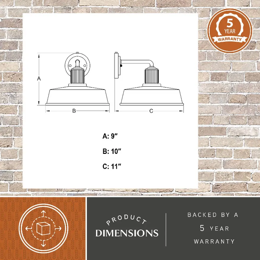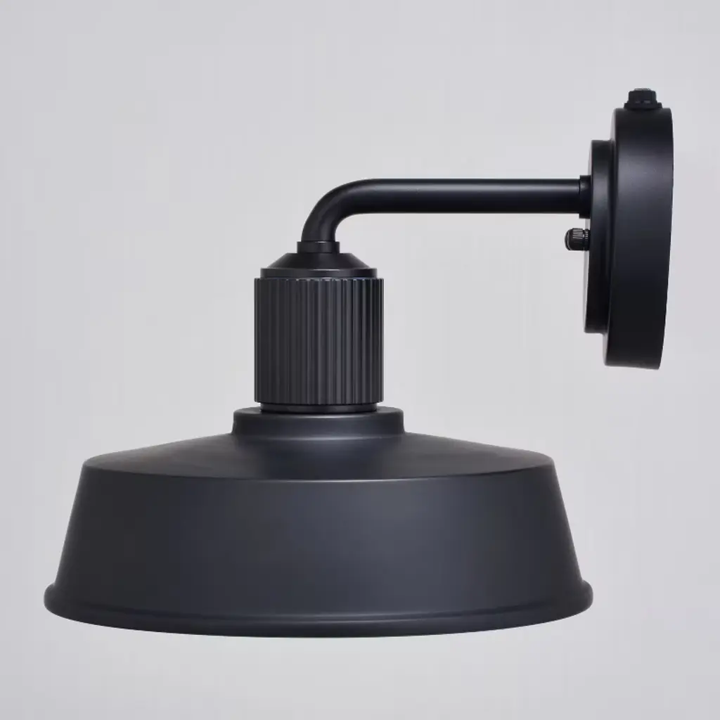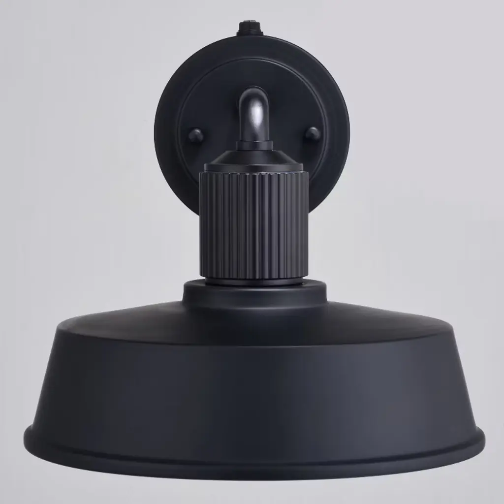 Modern industrial styling is at its best in the affordable Hammond wall light. A monochrome finish of matte black on the outer areas and glossy white on the inner shade highlight this fixture's striking appeal. The ribbed texture above the metal shade adds an eye-catching accent detail. It has a built-in dusk to dawn photocell that automatically turns the light on at dusk and off at dawn, saving energy during daylight hours. Add this modern barn light to any outdoor or indoor space where an industrial or farmhouse style will be accentuated.