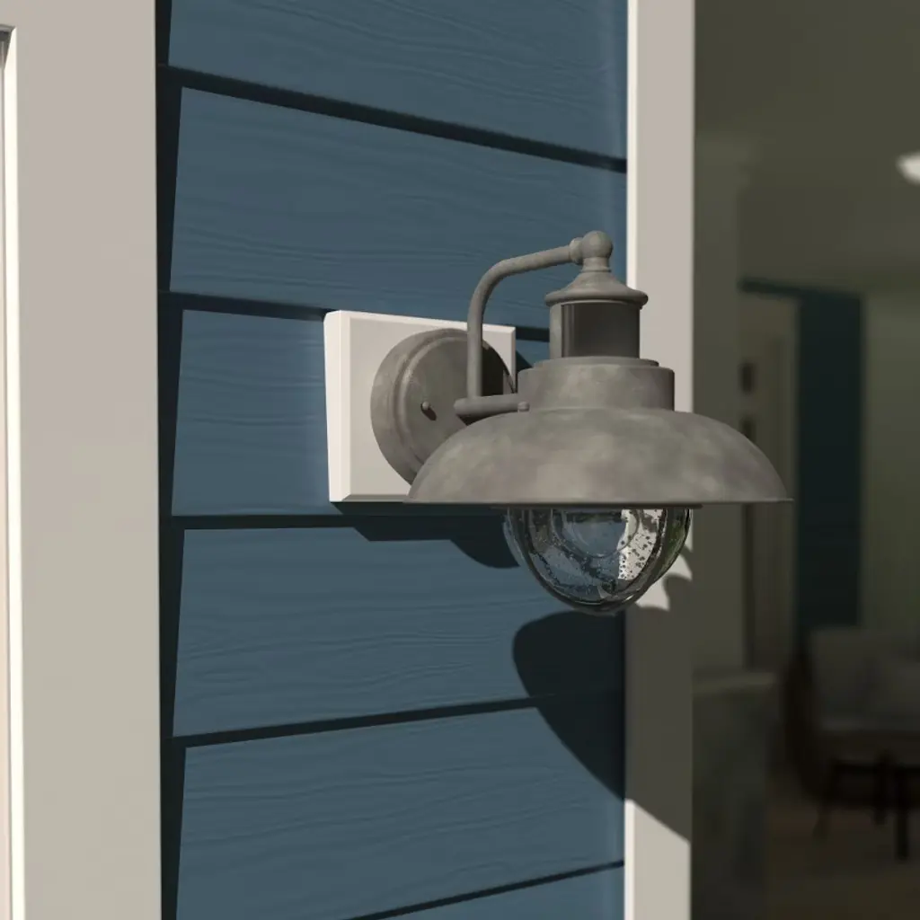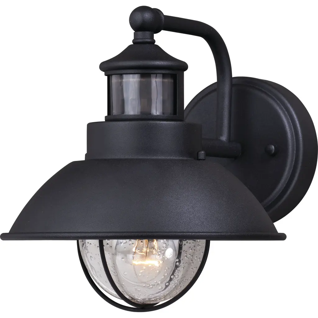 Collection: Harwich, Material: Steel, Finish Color: Textured Black, Width: 6.25", Height: 12.75", Depth: 8", Height From Outlet Box: 4.25", Backplate Width: 4.25", Backplate Length: 7", Lamping Type: Incandescent, Number Of Bulbs: 1, Wattage: 60 Watts, Moisture Rating: Wet Rated, Desc: An iconic nautical-style design, the Harwich collection will bring a coastal New England feel to your home's exterior. Dualux dual-level outdoor security lighting is designed to fit your lifestyle and enhance the beauty, safety, and usability of your home's exterior areas. Enjoy the comfort and convenience of continuous bright illumination during the early evening hours with automatic dimming late at night to provide soft, ambient illumination until dawn. Rest assured knowing that whenever motion is detected, on-demand bright illumination will be triggered to keep your property safe and secure. This fixture works with any dimmable incandescent or halogen bulb and many dimmable LED bulb models. You get c